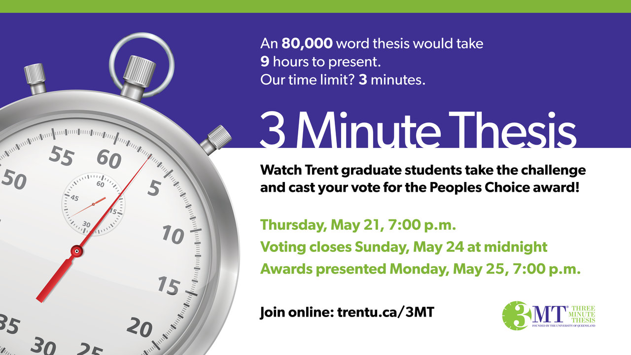 The winner will represent Trent at 3 Minute Thesis Ontario later.