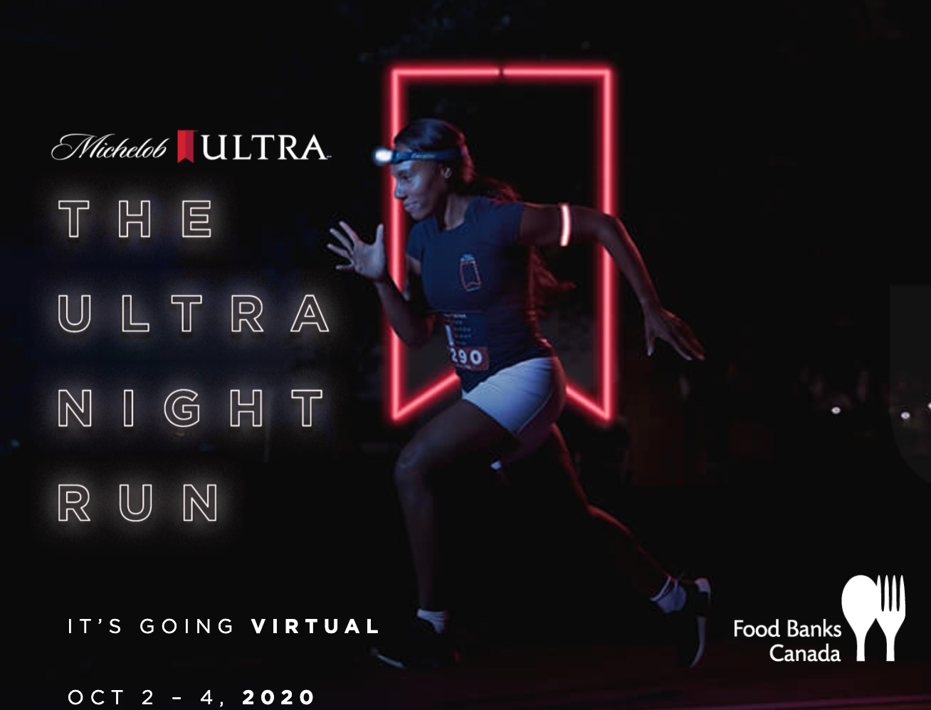 The Ultra Night Run returns like never before. The one-of-a-kind 5K and 10K is going virtual. Join Michelob ULTRA, Running Room, Brooks, and STRAVA as we help runners light the night across Canada. Whether it be on your streets or your treadmill, this year’s virtual event comes with a race kit that includes everything you need to stay bright as you take on the night. Run anytime, anywhere between Oct. 2-4, log your KMs on Strava and for every 1 KM run 1 Meal will be donated to Canada Food Banks!