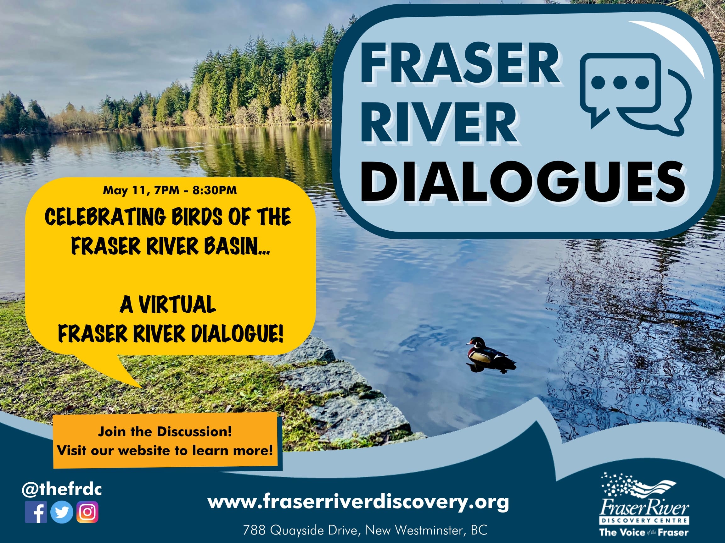 The Fraser River Discovery Centre is excited to present its next edition of the ongoing Fraser River Dialogue program, taking place on Tuesday, May 11th from 7PM – 8:30PM. Fraser River Dialogues are a series of panel discussions that engage interested parties on topics related to the Fraser River, in an open and positive environment welcome to everyone! Our next Fraser River Dialogue takes place on-line on May 11th, and will focus on the birds of the Fraser Basin as part of this year’s Vancouver Bird Celebration. We’ll be featuring panelists that are experts on the resident and migratory birds of the Basin, who will share information on the birds that travel the Pacific Flyway migration route, and why the Fraser River is so important for their journey. Due to ongoing Pandemic restrictions – and to keep everyone safe – this Dialogue will be done on-line via Zoom and is free of charge, although donations to the FRDC are welcome! Register for this online event here: https://www.eventbrite.ca/e/celebrating-birds-of-the-fraser-river-basin-a-virtual-fraser-river-dialog-registration-150272718747