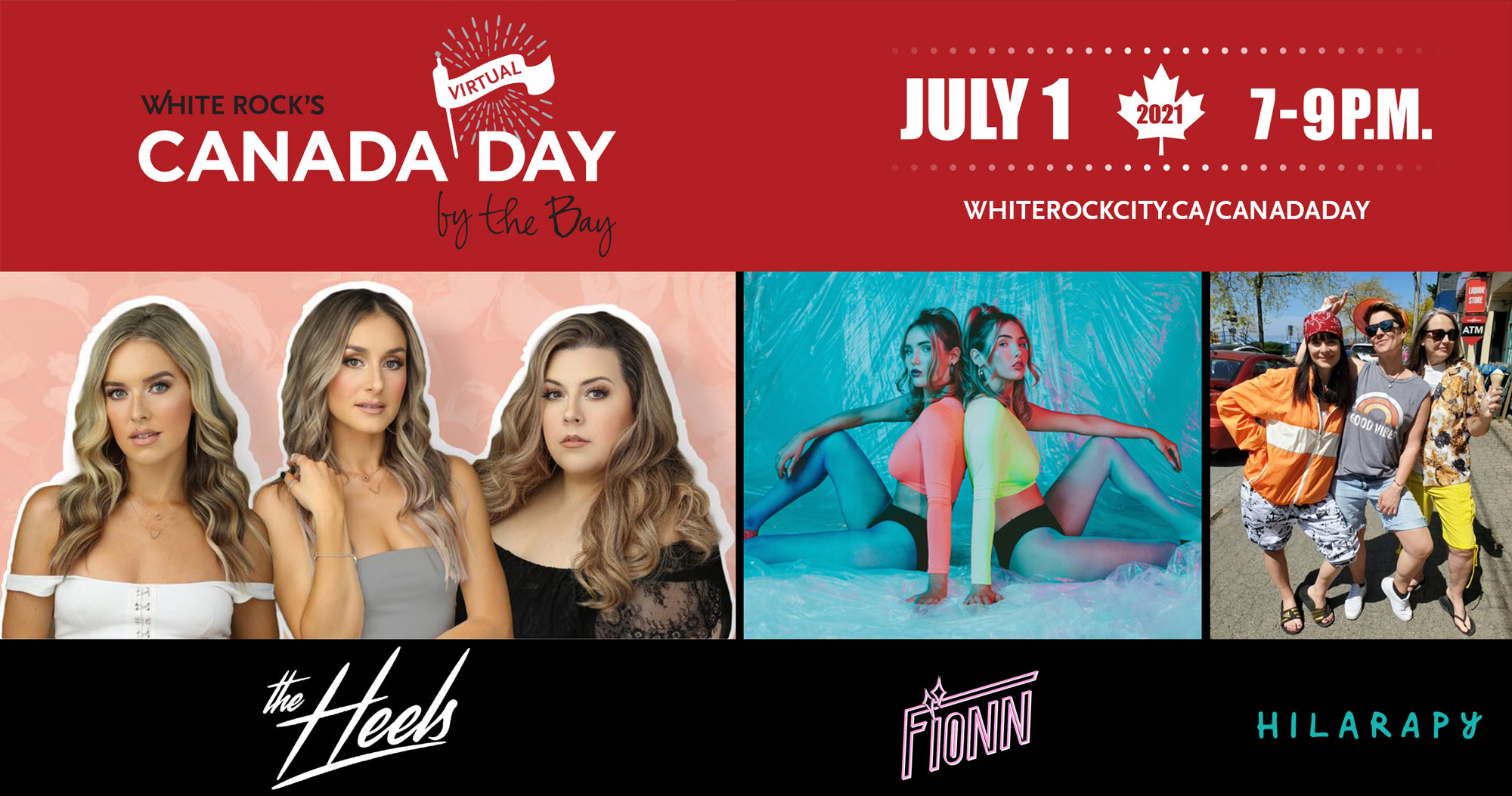 The City of White Rock presents the second White Rock Virtual Canada Day by the Bay celebration on July 1 with performances by country band The Heels, pop duo Fionn and improv comedy group Hilarapy. The theme for 2021 is “White Rock Together.” The matinee starts at 1 p.m. and the headline show kicks off at 7 p.m., starting with the White Rock City Orchestra performing O Canada. Play an online Canadian Trivia challenge with a live leaderboard. Great prizes go to the top three participants. Plus, there will also be a Canada-themed virtual photo booth available all day. Enter the Canadian Spirit contest between now and June 21 for a chance to win great themed prizes. The first 20 entries will win a Canada Day decorating kit. Join us by visiting The City of White Rock’s Youtube channel or Facebook page on Thursday, July 1, on your computer, tablet, smartphone, TV or preferred device – let’s celebrate!