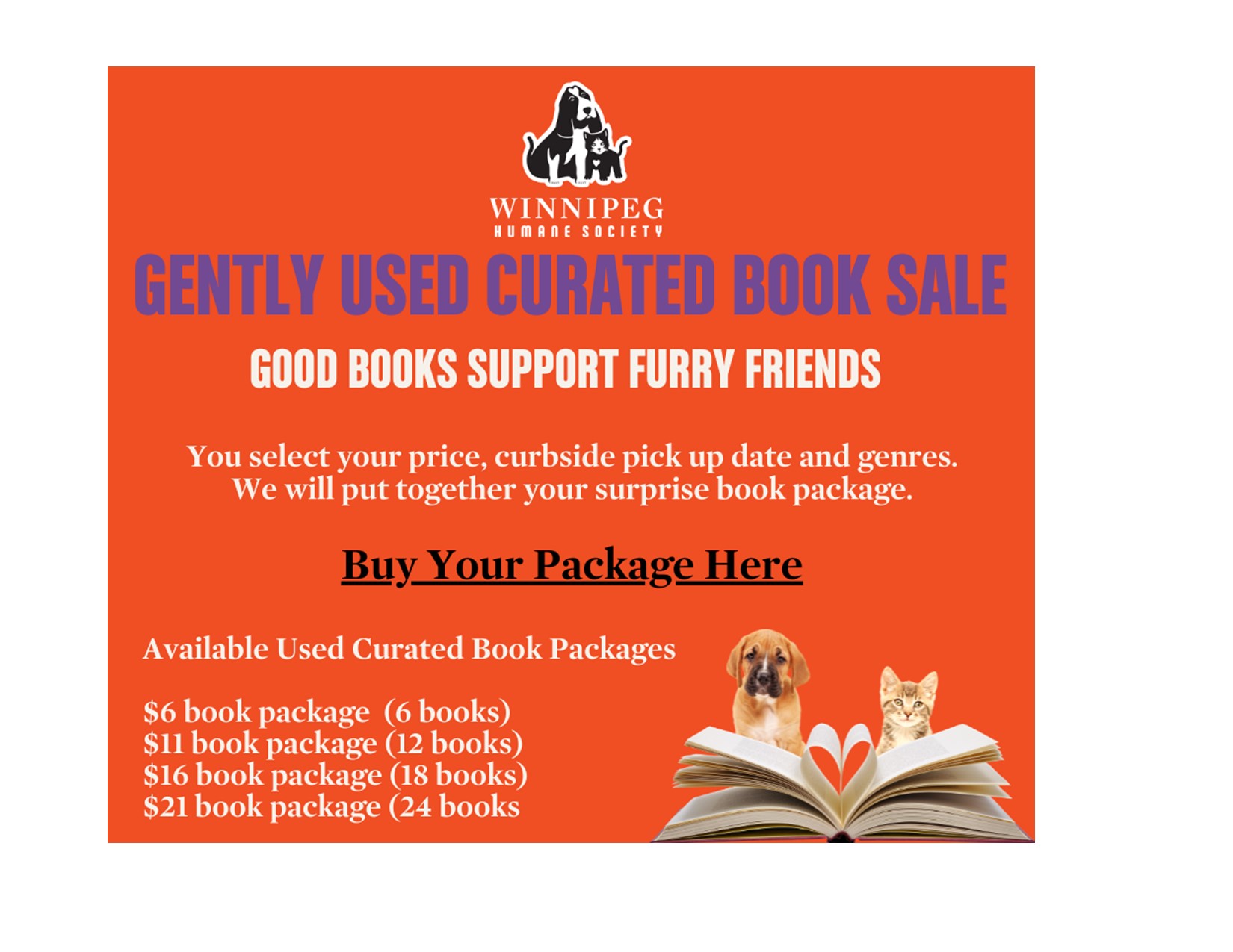 We are excited to launch the WHS Gently Used Curated Book Sale! What a fun way to be introduced to new authors or genres and at the same time, support the animals in our care!! Select your gently used book sale package from a $6 (6 books), $11 (12 books), $16 (18 books) or $21 (24 books) price point. Then select your shelter curbside pickup date starting August 17th available Tuesdays & Wednesdays, 5:00pm-7:00pm or Saturdays 10:00am-12:00pm. Complete your sale by selecting three genres and pay on-line with a secure credit card transaction. Then leave the rest up to us! Our amazing volunteer team will put together your own unique surprise book package based on your selected three genres. Buy Your Book Package Here: https://www.mytime.com/express_checkout/117806/127156?selectedDeals=253402&selectedEmployee=166512
