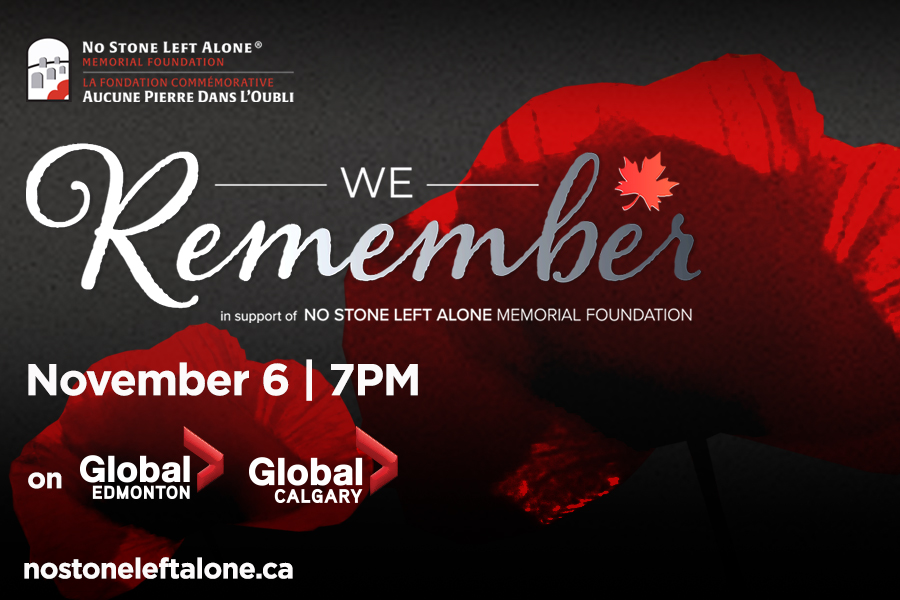 Join us Saturday, November 6 at 7 pm for We Remember, a No Stone Left Alone special presentation hosted by Global News Anchor Gord Steinke, including excerpts from the film “Died for Freedom” – with narration by Dan Aykroyd.