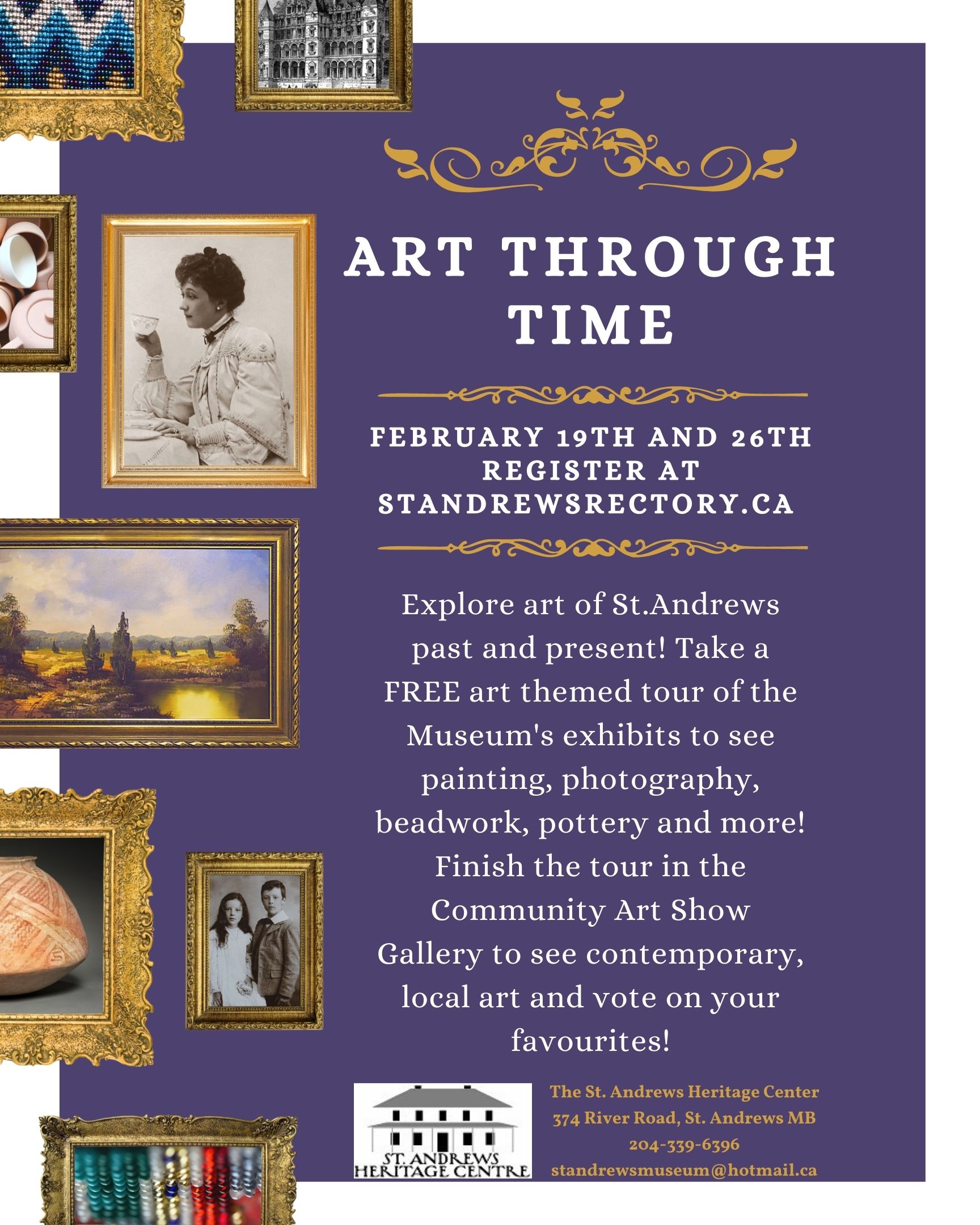 Explore art of St .Andrews past and present! Take a FREE art themed tour of the Museum’s exhibits to see painting, photography, beadwork, pottery and more! Finish the tour in the Community Art Show Gallery to see contemporary, local art and vote on your favourites!