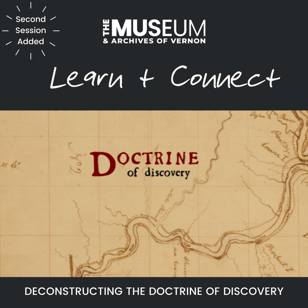 The Doctrine of Discovery was a late-medieval philosophy that was used to justify imperialist ventures and legitimize the colonization of Indigenous peoples in various regions around the world. The centuries old document informed Canada’s earliest European explorers, and continues to profoundly – and negatively – impact Indigenous people today. The second session in the Learn + Connect series, invites participants back to a discussion about the Doctrine of Discovery to explore themes around land theft, genocide and personal responsibility towards reconciliation.