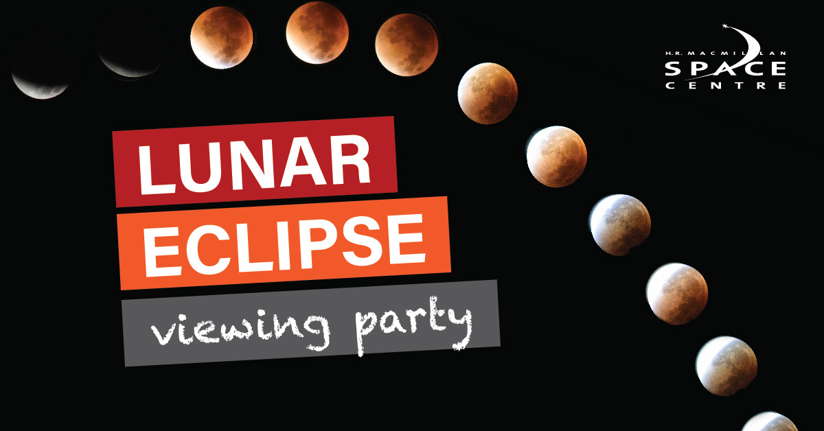 The Space Centre is staying open late for the total lunar eclipse! Learn more about the Moon and eclipses in a special show in the Planetarium Star Theatre. The observatory will also be open so you can check out the Moon up close through the telescope, and there will be time to explore the exhibits in the Cosmic Courtyard. If it is a rainy night we’ll have a live feed of the eclipse in the Planetarium Star Theatre. This event is recommended for ages 8+.