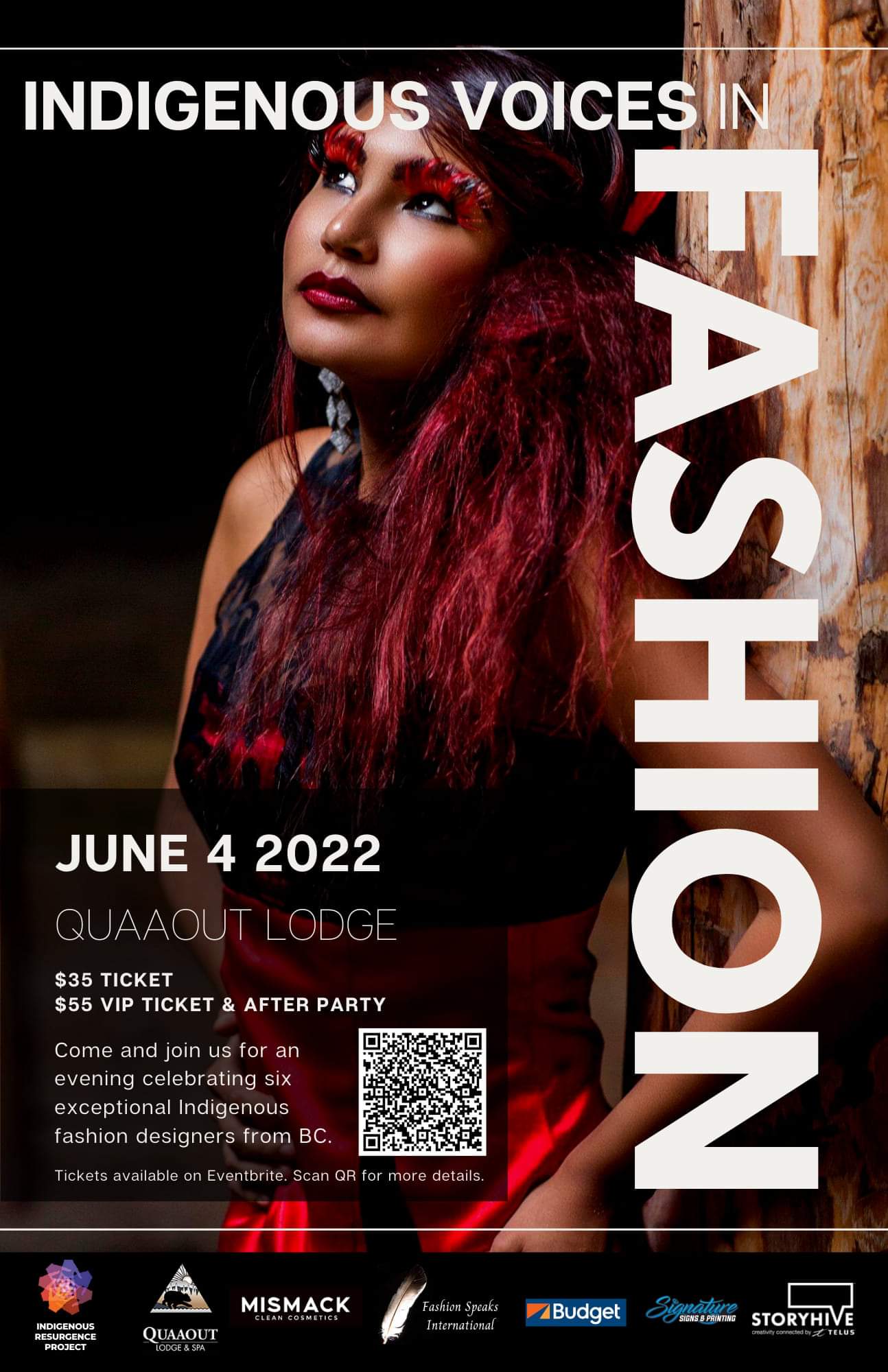Indigenous Fashion Takes Spotlight on the Little Shuswap. The 2022 Indigenous Voices in Fashion Show welcomes six unique Indigenous designers from across BC to the Skwlax Territory. Press Release: April 26, 2022 Photo: photographer Gary Ridsdale mask creator Erik Prytula HMUA Darlene Masi & model Heather Saatohsti CHASE, BC – On June 4th, Quaaout Lodge and Talking Rock Resort will be hosting a unique outdoor fashion experience that will showcase six Indigenous designers from across BC. Organized by Kim Coltman and documented by Telus Storyhive Game Changer, this fashion show could be considered a once-in-a-lifetime opportunity to be immersed in vibrant Indigenous art. The 2022 Indigenous Voices in Fashion show is a labor of love from Kamloops-based modeling agent, Kim Coltman of Fashion Speaks International. Coltman has dedicated years of her life to fashion and working alongside Indigenous models and designers, and this upcoming show will be no different. Platinum Sponsor, Telus Storyhive, has no small part in making this show a reality and helping Coltman provide a spotlight for these talented designers through a documentary funding opportunity. Set in the beautiful landscape at Quaaout Lodge on the Little Shuswap, the event begins with a free indoor artisan market organized by the Indigenous Resurgence Project, followed by a remarkable outdoor fashion show under the trees, and wrapping with a VIP after-party to celebrate all the hard work that went into making this special event happen. The VIP party will include meet-and-greet opportunities with both the models and the designers, as well as viewing the fashion collection presented. At every level of this event, Indigenous artists, businesses, and entrepreneurs are placed at the forefront of this special event. It is the mutual goal of Fashion Speaks International and the Indigenous Resurgence Project to support Indigenous voices, and this event is just one of the ways that is being achieved. The indoor Resurgence Market will run from 2PM-6PM, with free admission. The Fashion show will begin seating at 5PM, starting the show at 6PM. Tickets for the fashion show are sold at two price points (General Admission at $38.15, and VIP at $59.37), and are being sold on Eventbrite: https://www.eventbrite.ca/e/indigenous-voices-in-fashion-tickets-310240988147 If you have any additional questions, please reach out to Shay Paul at shay-paul@hotmail.com or Kim Coltman at fsimodels@gmail.com and we will be happy to assist.