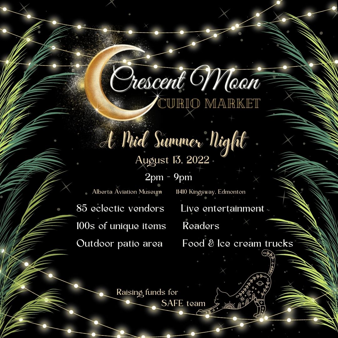 An unCONventional meeting of like-minded souls, Crescent Moon Curio Market is a mini-convention that’s geared toward unique, unusual and eclectic homemade/crafted products that spans the gamut from gothic and witchy to boho and new age with a dash of dark and nerdy, and everything in between! There will be a food truck, specialty ice cream, mini donuts, live entertainment and a patio to enjoy the summer afternoon & evening before, during and after shopping local!