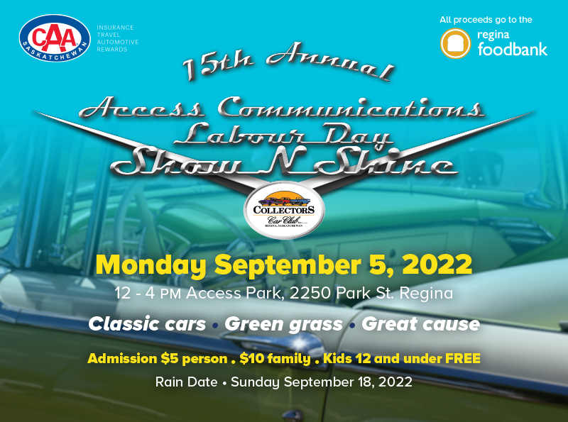 The Access Communications Community Park is the gathering place for hundreds of antique, classic and vintage vehicles and motorcycles each Labour Day Monday. In support of the Regina and District Food Bank.