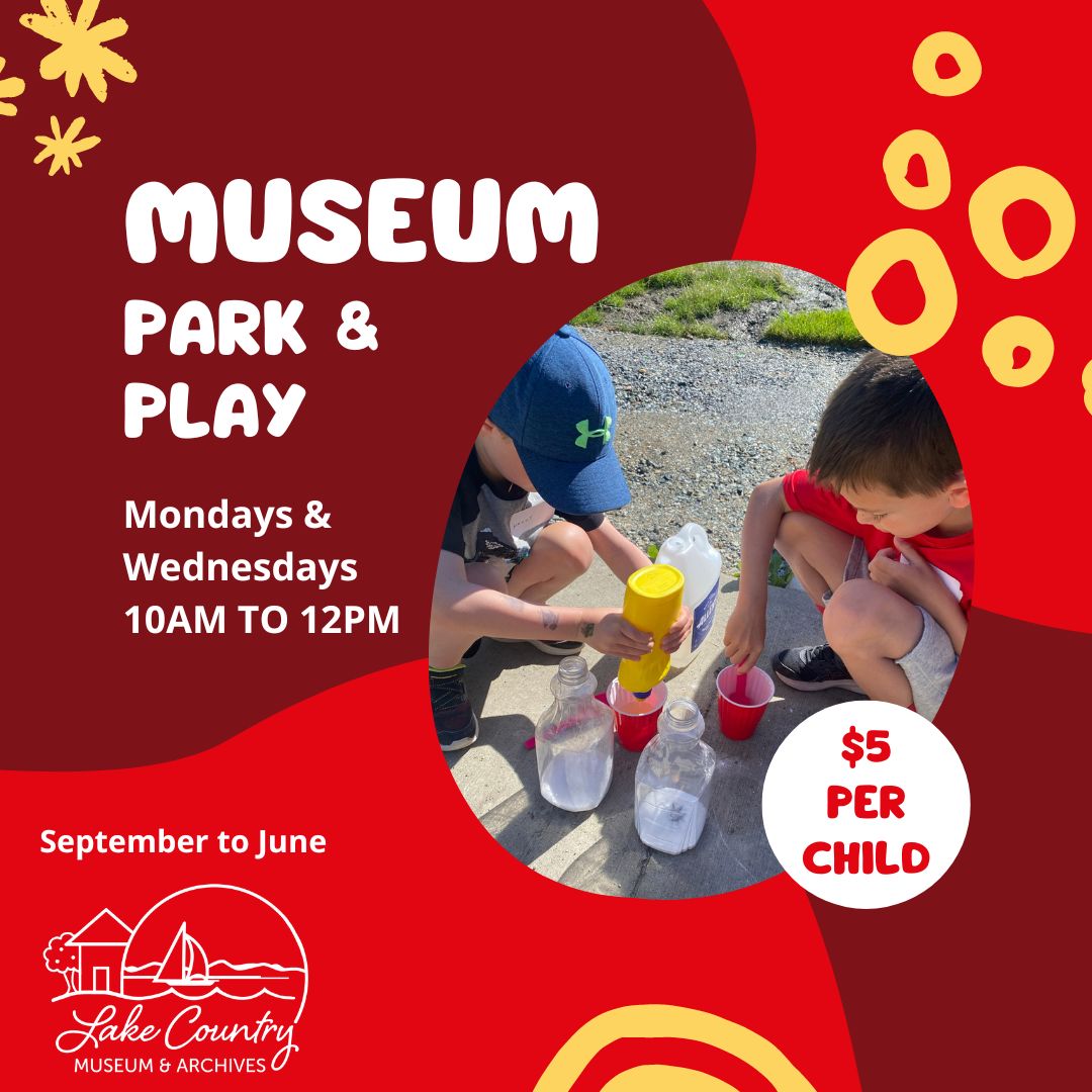 Join us for Museum Park & Play on Mondays and Wednesdays from 10AM to noon beginning Wednesday, September 7th, 2022. Chat with friends, locals, and new members over an organic tea or coffee while kids use their imagination to craft amazing artwork. With quick access to the shoreline of Okanagan Lake, explore the beauty of Lake Country, kids will be provided with tools to perform an “archeological dig”. A great mix of learning, crafting, and playing. All supplies provided and no need to register, just drop by. We look forward to seeing you there.