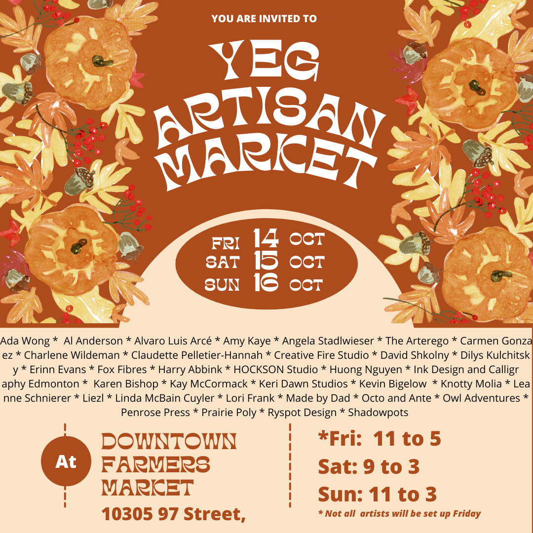 Join us on the second floor of Edmonton’s historic downtown market building. We’ll be hosting local artists and makers for a weekend of all things art. There will be a wide variety of art – for your walls, your tables, your gardens, your ears, yourself and your friends!
