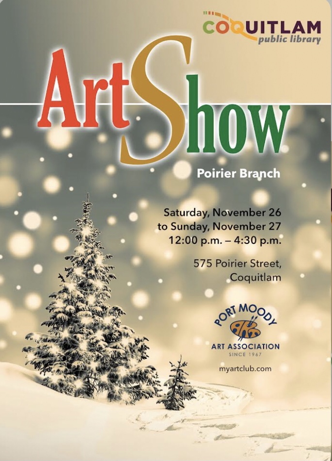 Members of Port Moody Art Association are holding an Art Show at Poirier Coquitlam Library, Saturday & Sunday, November 26 & 27th. From noon to 4:30 each day.