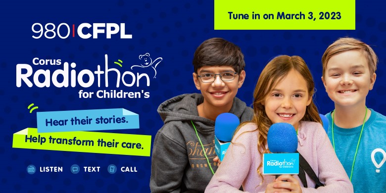 For the 9th year in a row, Corus Radio, in collaboration with Children’s Health Foundation, will host its annual Radiothon fundraiser! Listen as we broadcast live from Children’s Hospital on March 3rd for 12 consecutive hours.