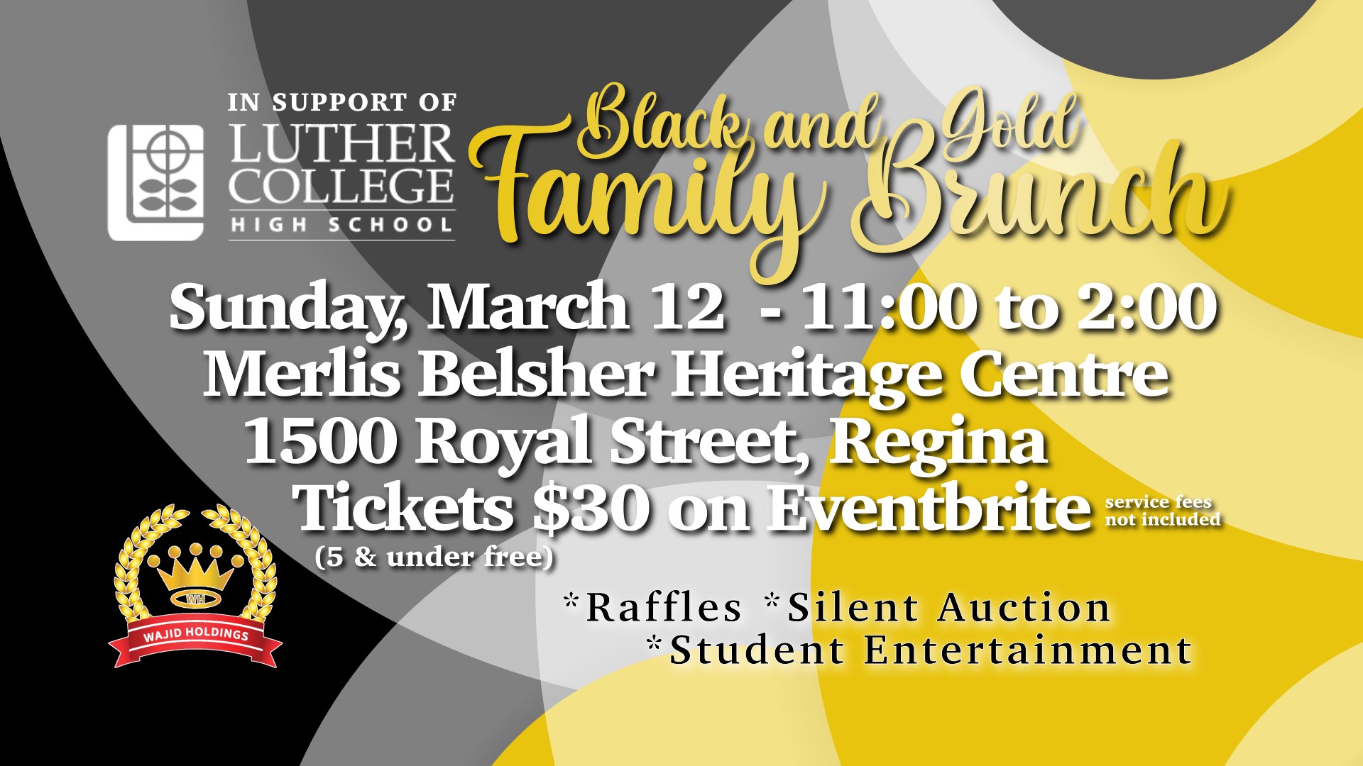 Join us on Sunday, March 12, as the Luther Parent Committee hosts its eighth annual fundraiser, the Black & Gold Brunch, in support of Luther College High School. The event will include entertainment throughout brunch, a silent auction, a gift card wall and other engaging activities to keep our guests entertained! Proceeds from this year’s event will fund new AV equipment for the Merlis Belsher Heritage Centre and an information technology cart. For more information and to purchase tickets click here: http://ow.ly/5GH650MZrcN