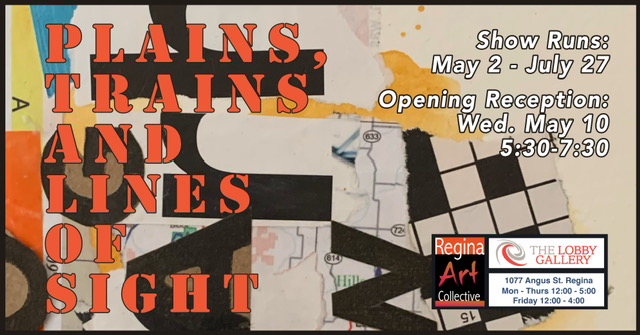 The Lobby Gallery in Regina would like to invite the public to a FREE art show entitle PLAINS, TRAINS AND LINES OF SIGHT. PLAINS, TRAINS AND LINES OF SIGHT is a free display of the newest artworks by Regina Art Collective artists: Jeffrey Taylor, DeLee Grant, Doug Scott, Les Sneesby, Derek Olson, Dave Gejdos, Shelley McGillivray, Brenda Cardiff and Nikki Jaquin. Dates: May 2-July 27, 2023