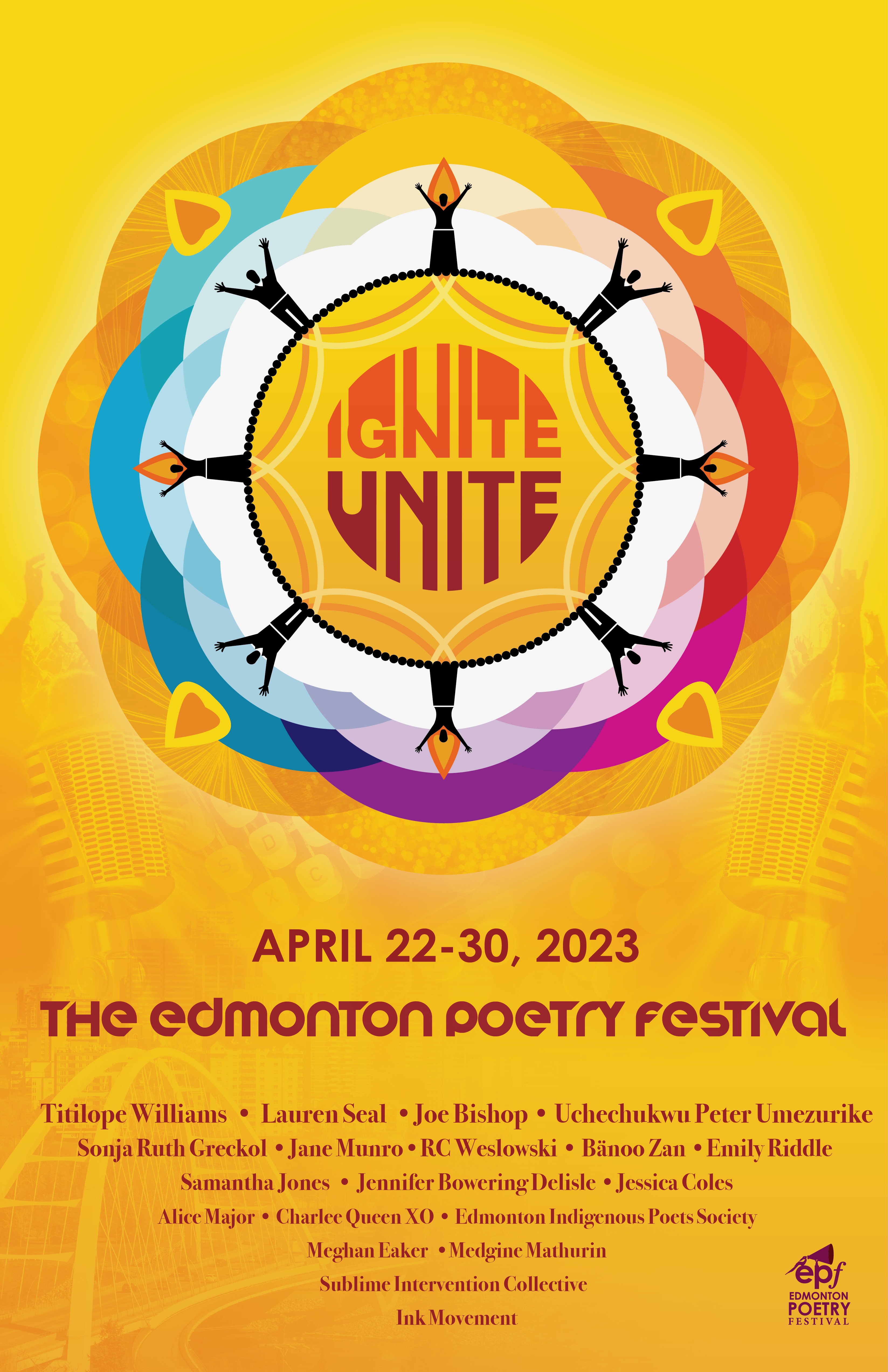 EPF Ignite Unite is running from April 22nd – April 30th! This year’s lineup features our city’s own poet laureate, Titilope Williams, St. Albert’s Poet Laureate Lauren Seal, and many more incredible local artists. We are thrilled to bring back The Binks this year, as well as host several workshops and open mics to highlight the mighty poetic talent in our city. Most events are free or admission by donation, and welcome all ages. See website for more information.