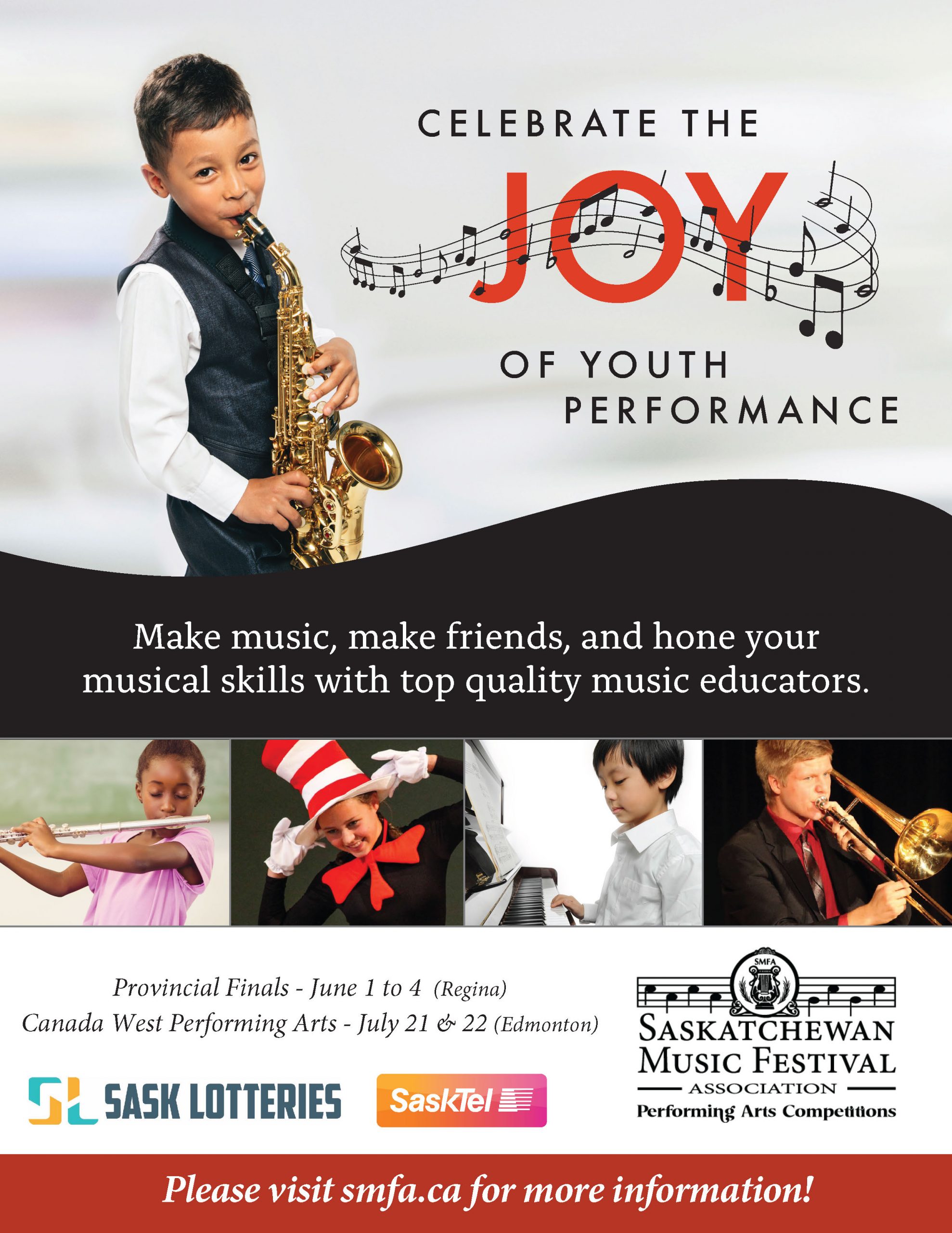 Saskatchewan Music Festival Association is hosting the 2023 Provincial Finals Competition in Regina, June 1-4, 2023. Performances will be held at the beautiful Conservatory of Performing Arts and Darke Hall. Admission is by donation. Everyone is welcome! For more information visit http://www.smfa.ca