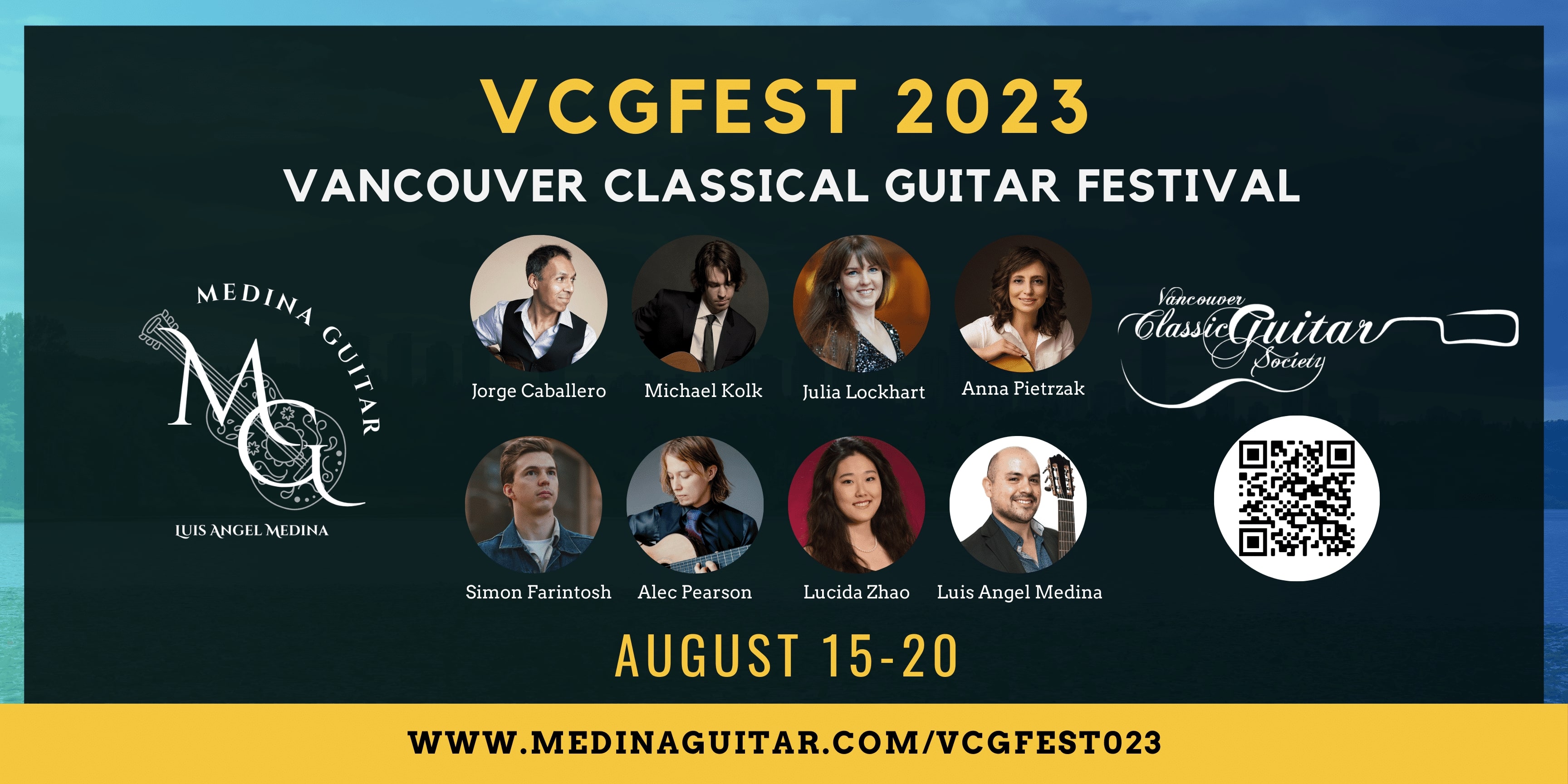 The 2023 Vancouver Classical Guitar Festival is an intimate, intensive learning experience for guitarists of all levels held August 15th-20th in the beautiful setting of the Deer Lake Gallery in Burnaby. VCGFest invites guitarists to immerse themselves in a week of masterclasses, workshops, lectures and guitar orchestra. Participants and music lovers are invited to be inspired by faculty concerts by stellar classical guitarists Jorge Caballero, Michael Kolk, Anna Pietrzak, Simon Farintosh, Alec Pearson and Luis Medina.