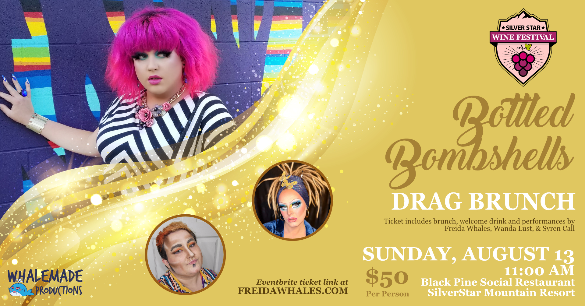 Join Freida Whales, Wanda Lust, and Syren Call for a fabulous drag brunch, as part of Silver Star Wine Festival. Doors at 11:00, Show at 11:30 Tickets: $50. Ticket includes brunch, welcome drink and drag performances.