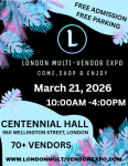 London Multi-Vendor Expo at Centennial HallThe London Multi-Vendor Expo is back and going to be at Centennial Hall! Click here for more details.OtherMar 21