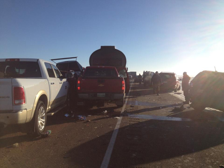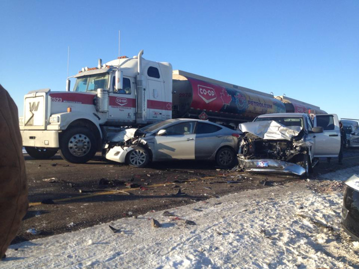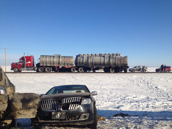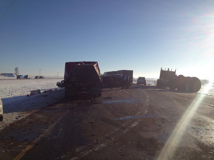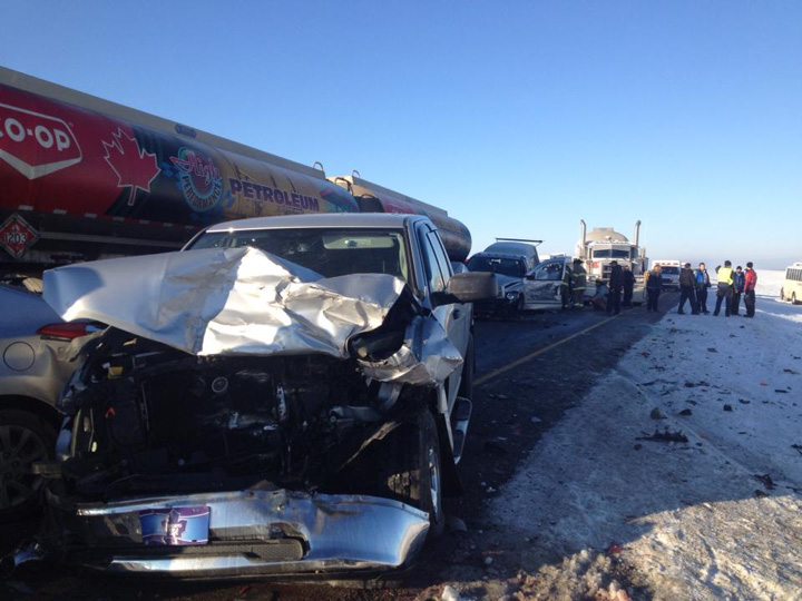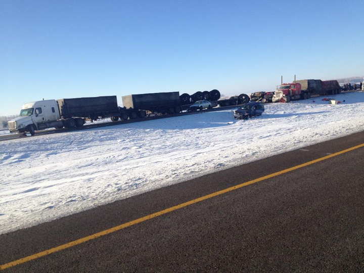 MAYMONT, Sask. – A multi-vehicle crash closed east and westbound traffic on Highway 16 just west of Maymont, Sask. on Saturday.