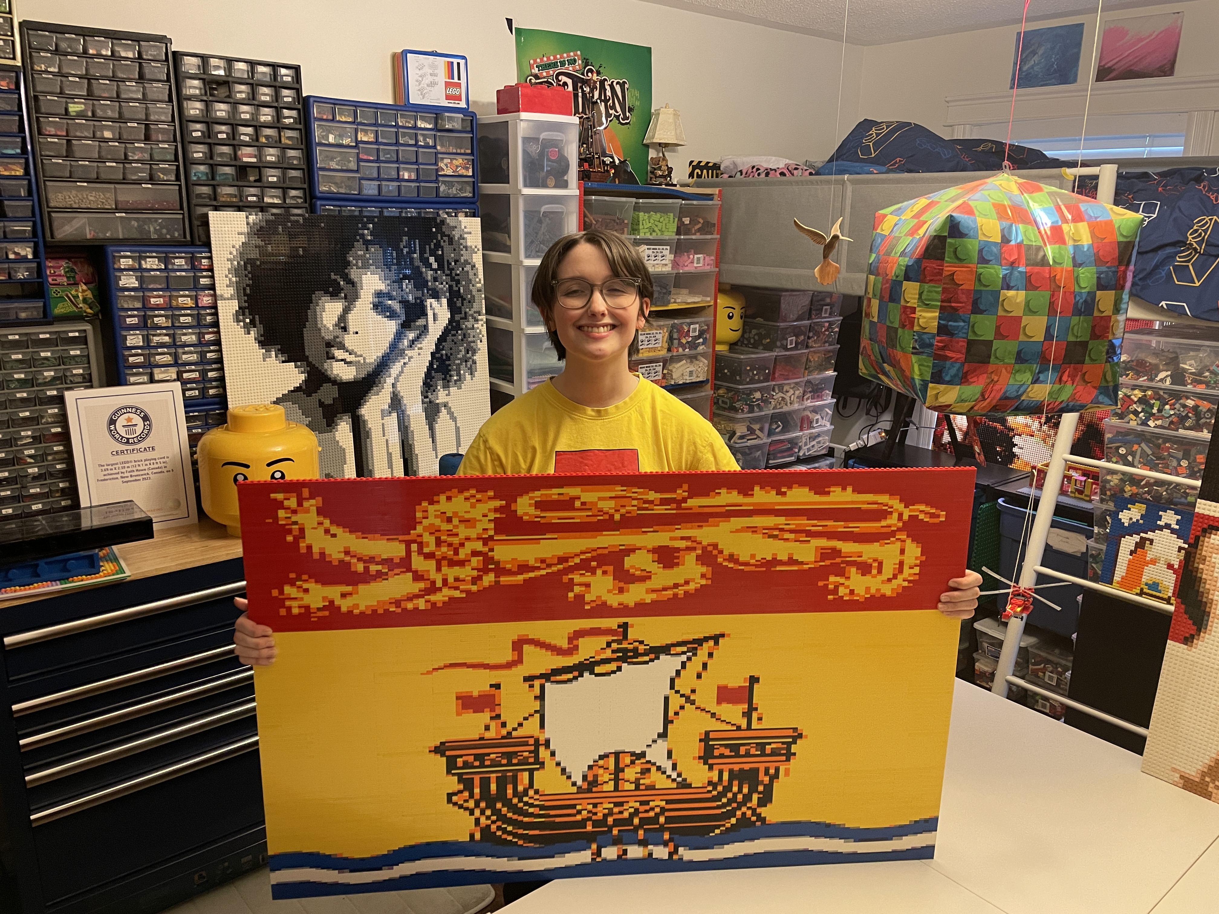 It’s a focus she used to earn herself a Guinness World record this summer, “for the world’s largest Lego brick playing card,” Howe said. The Lego card was 12 feet one inch by six-and-a-half feet and was built at the Fredericton Public Library.