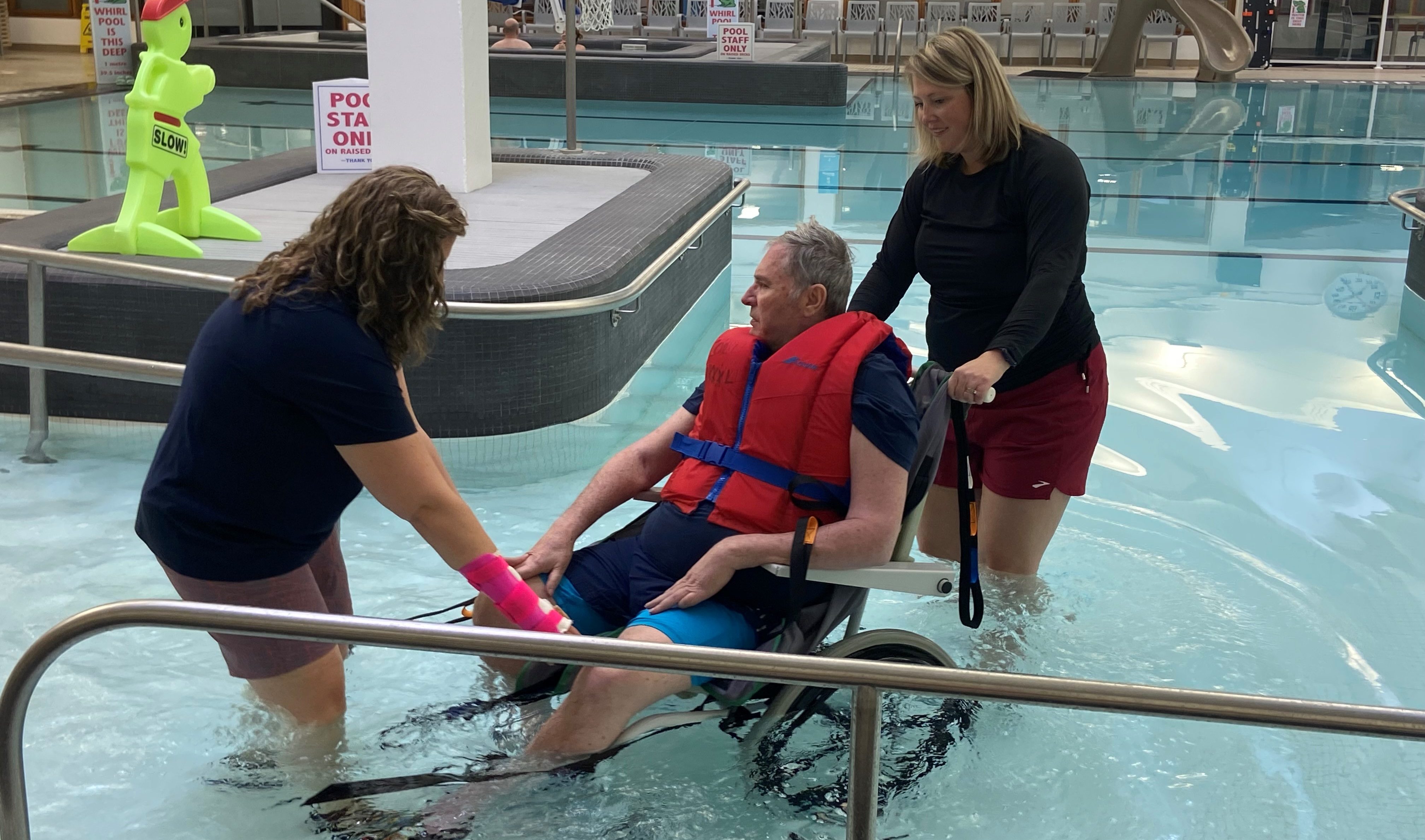 Before the pandemic, he’d been successfully using water rehab to increase his strength and mobility, allowing him to move around in the pool.