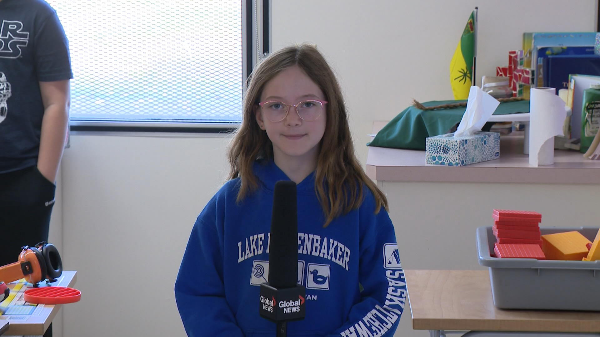 Meteorologist Peter Quinlan headed to St. Bernard School on Friday to talk about how to forecast weather with the newest crew of Global Saskatoon SkyTrackers.