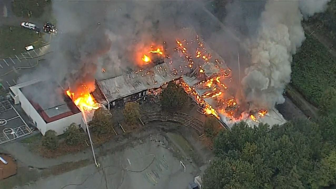 Large plumes of smoke were billowing high into the air Saturday morning in Port Coquitlam, B.C., due to a massive fire at Hazel Trembath Elementary School.