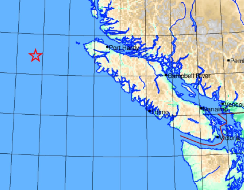 The epicentre was 198 kilometres west of Port Hardy, south of Vancouver Island.
