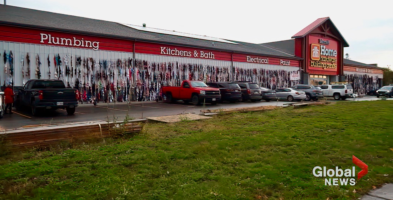 Organizers say 6,842 bras were collected for the 13th annual Bras Around the Building campaign and now hang at Merrett Home Hardware Building Centre on Lansdowne St. West in Peterborough. The business provided $1 for each donated bra and other donations helped to raise $13,584 to support the Canadian Cancer Society for breast cancer research – Oct 27, 2023
