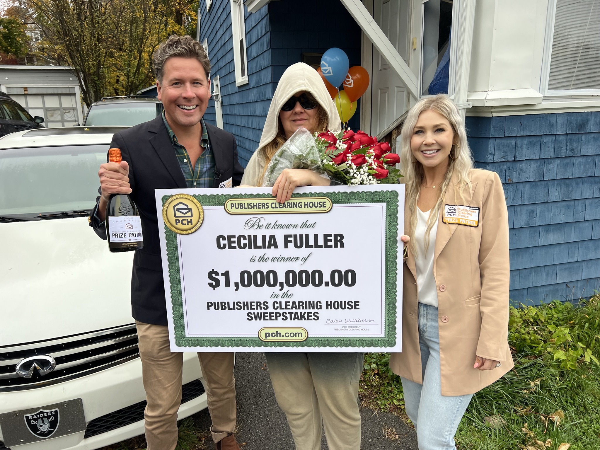 The Publishers Clearing House Sweepstakes prize patrol team was excited to deliver its latest $1 million cheque, but getting winner Cecilia Fuller to step outside her house proved quite the challenge.