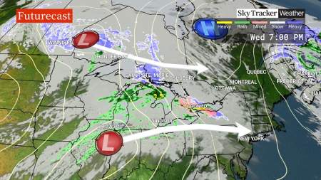 “The combination of a low-pressure system arriving from Colorado and an Alberta clipper will deliver a messy mix of precipitation starting by mid-afternoon and continuing into Thursday morning across eastern Ontario,” he said.