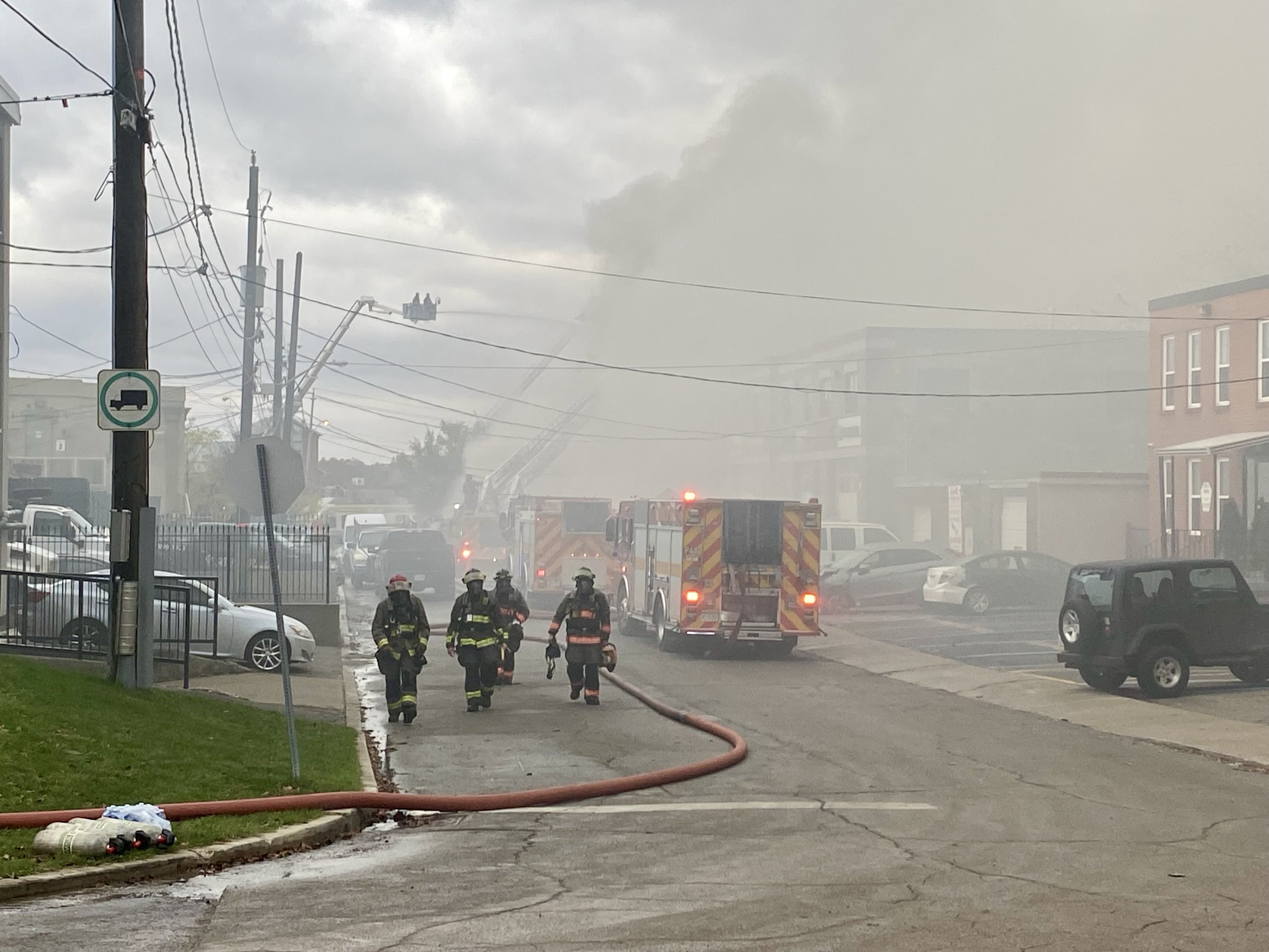 “Our goal right now is to contain the fire to the building of origin and protect the rest of the businesses,” Jessop said. He said the wind has caused some difficulties in battling the fire but that firefighters are equipped to deal with it.