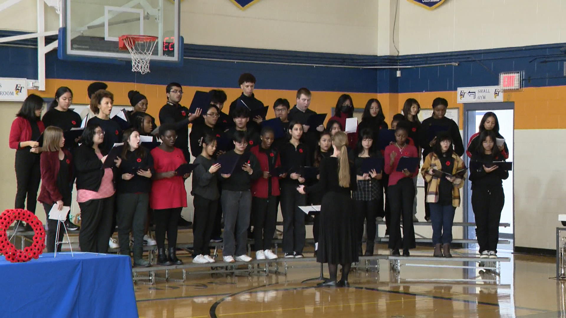 A student-led Remembrance Day ceremony was held Thursday morning at E.D. Feehan school in Saskatoon.
