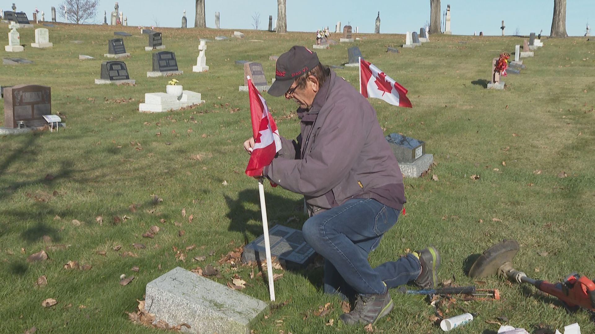 “It’s a matter of cleaning the stones, and maybe trimming a little grass, and visiting — maybe putting flowers so these vets are recognized the rest of the year not just on Remembrance Day.”