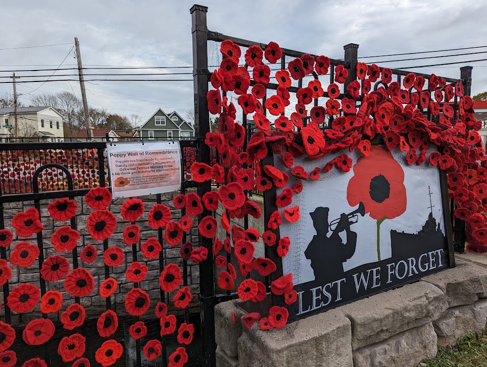 The Sullivan Pond bridge was fully decorated with poppies hand-crafted by residents, family, and community volunteers of the Oakwood Terrace Nursing Home in Dartmouth.