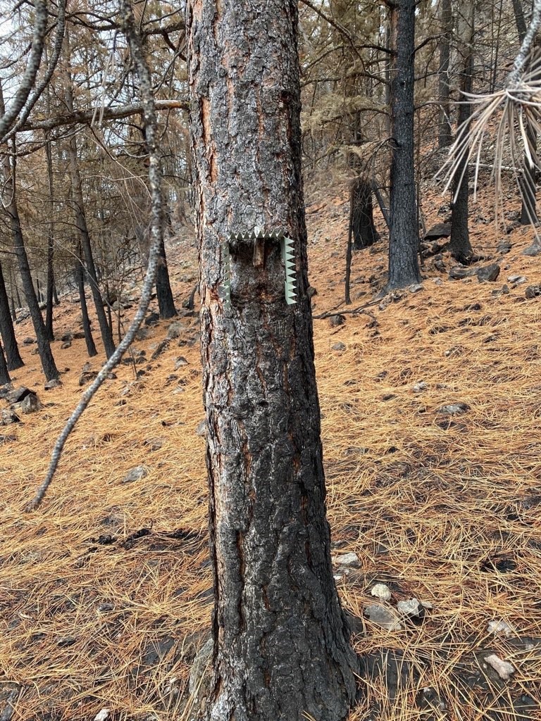 Researchers for the Southern Interior Mule Deer Project had gone to the McDougall Creek burn site and discovered that someone had removed their camera and lock, leaving the bear guard behind.