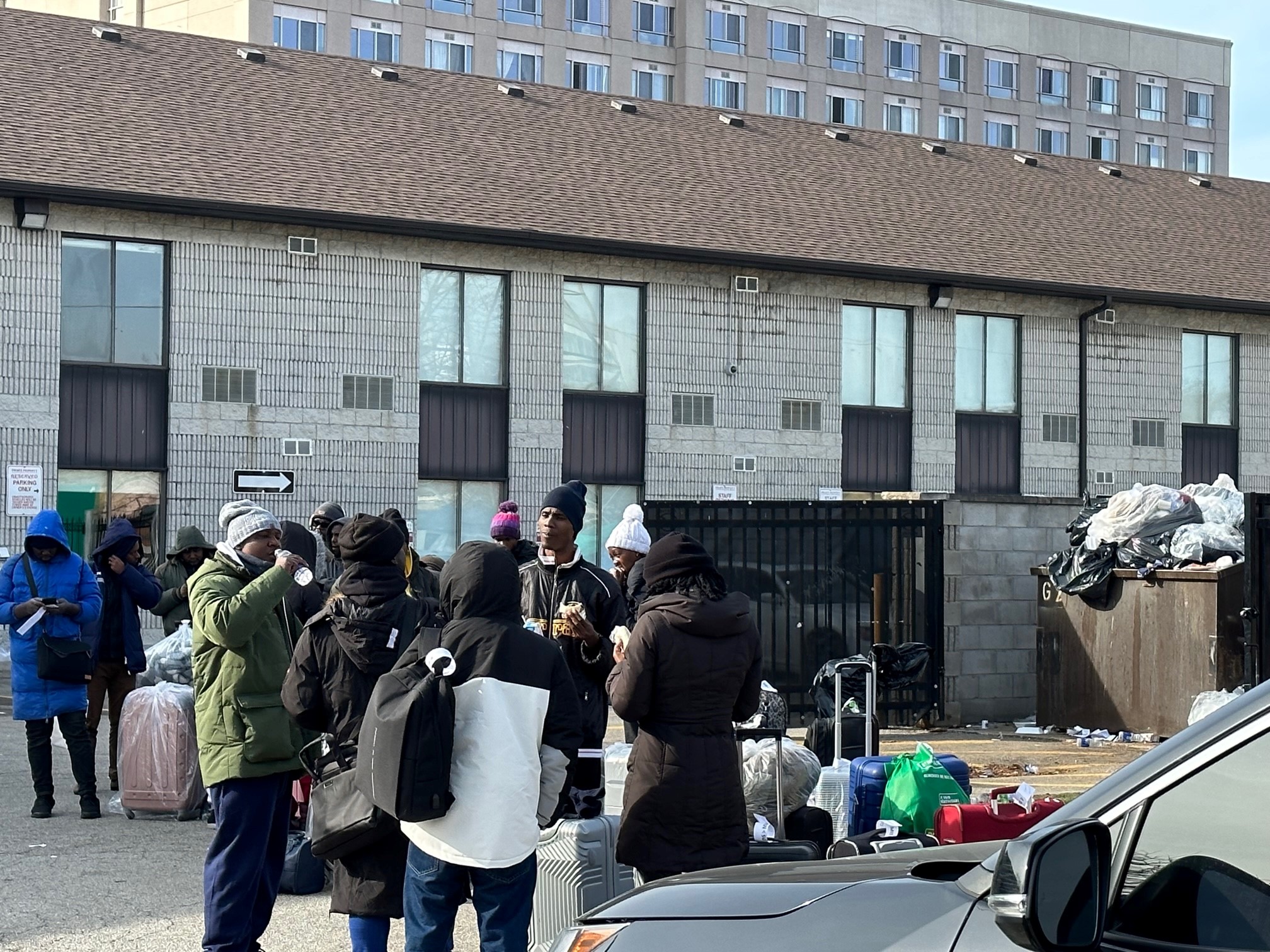 Images from outside of the shelter show people waiting outside with their suitcases and belongings. Shortly after noon, people were seen getting onto a bus but it is unclear where they were taken to.