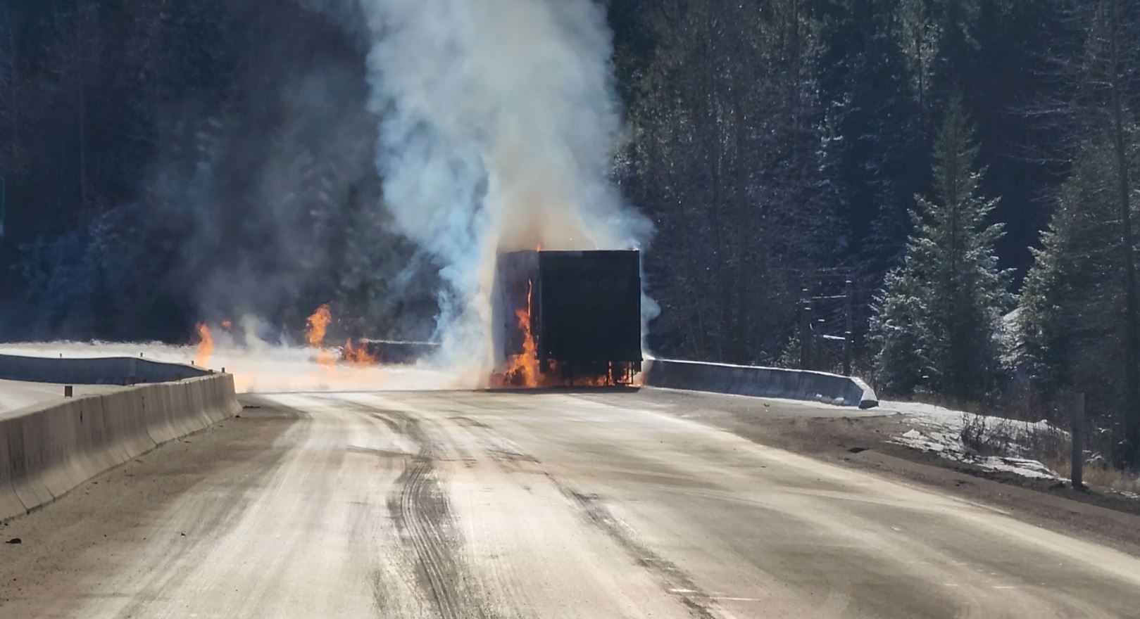 According to police, the truck fire is roughly 20 kilometres from West Kelowna, near the Silver Creek pullout.