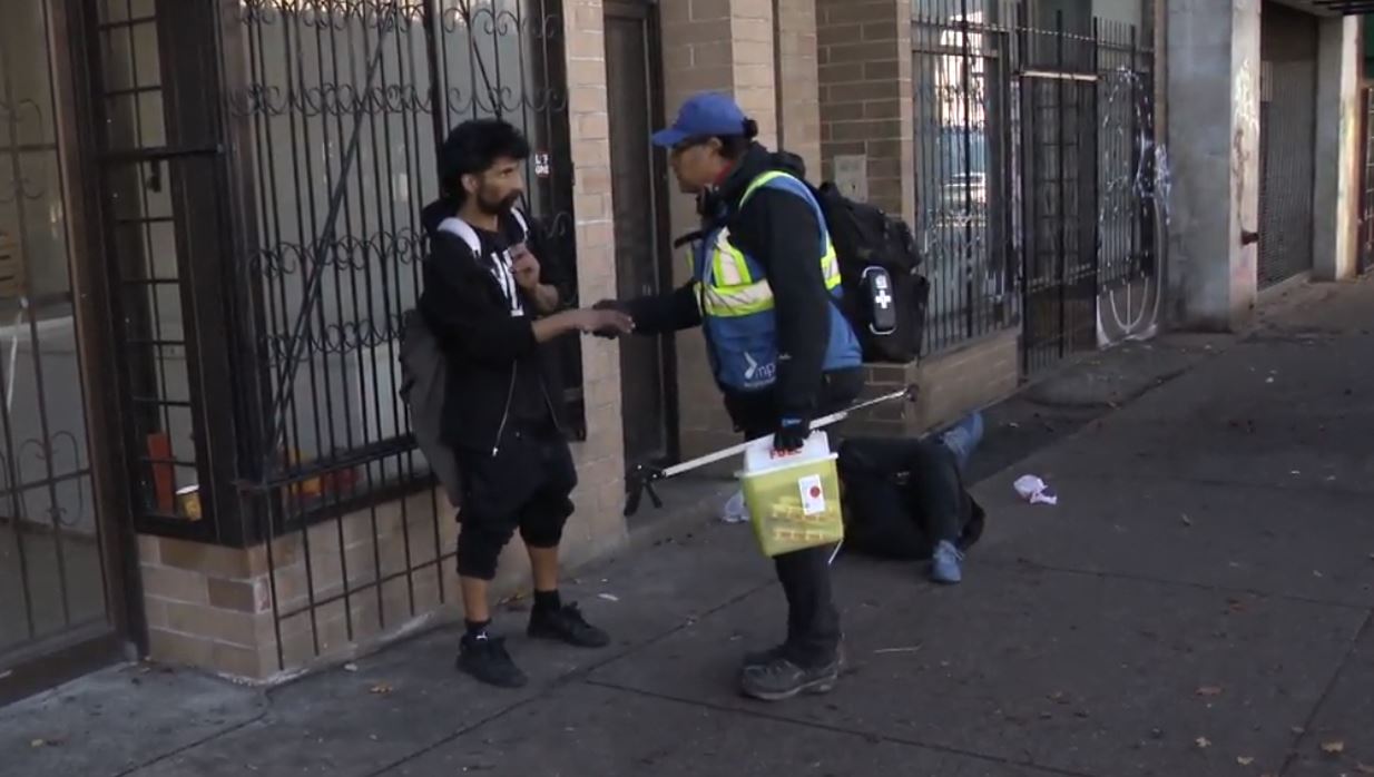 He’s a familiar face to many in the neighbourhood as he patrols the streets, picking up needles, checking on people who look like they might need help and sometimes just providing a person to talk to.