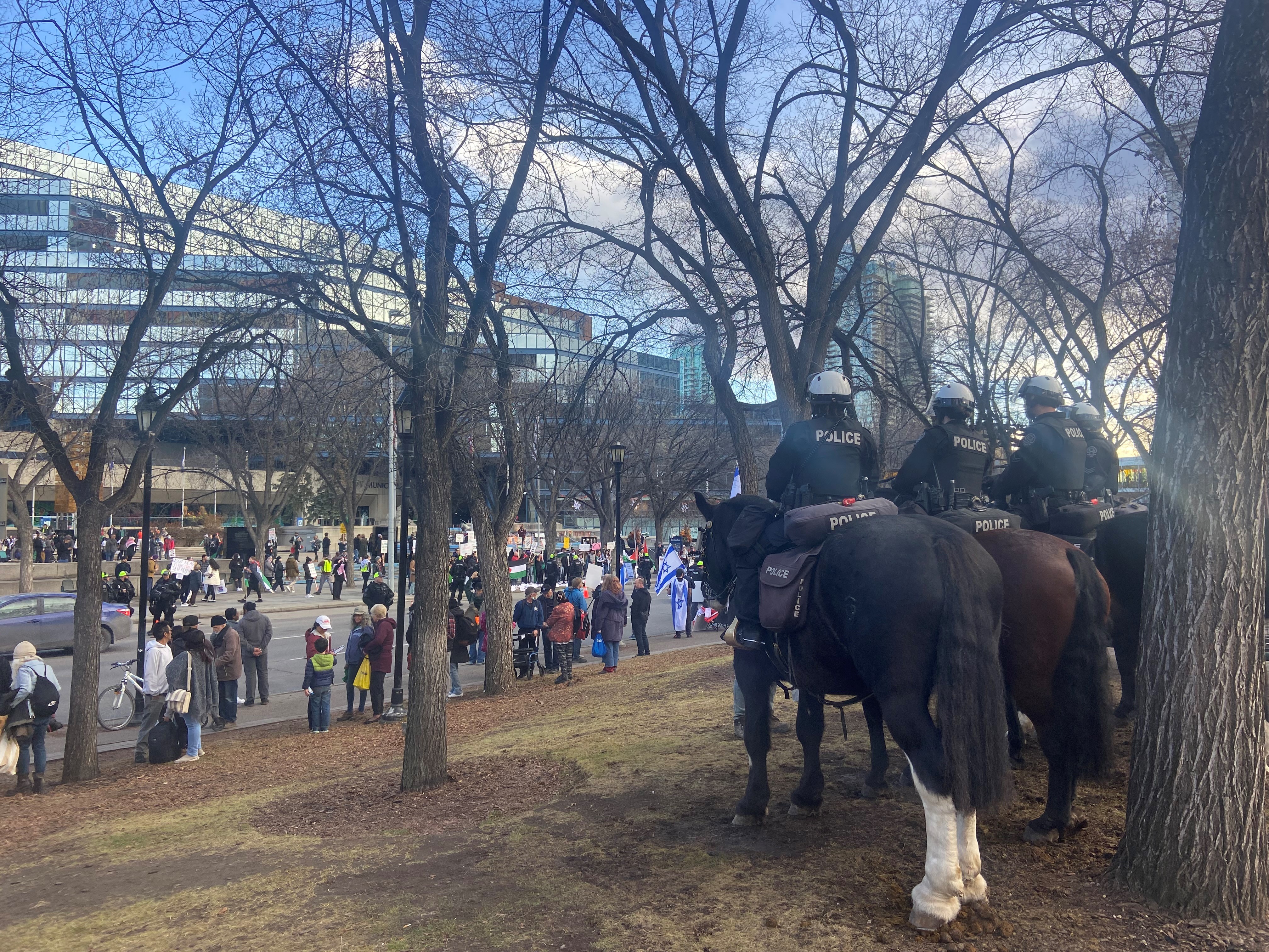 According to the CPS, over 1,000 people attended a Justice for Palestinians rally in front of City Hall, while over 200 people attended a pro-Israel rally in Olympic Plaza across the street at Macleod Trail.