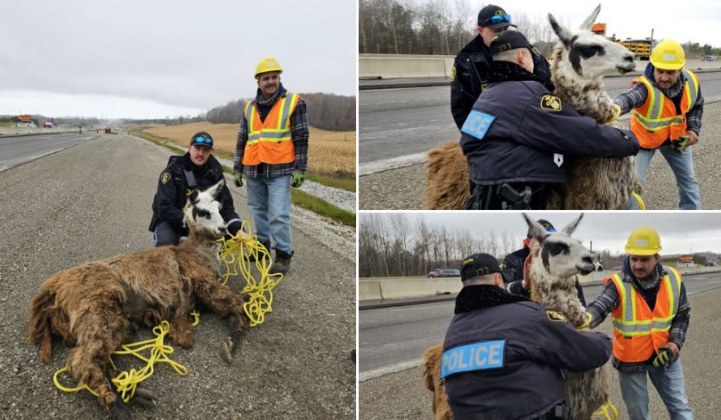The Ontario Provincial Police say officers and the province’s Ministry of Transportation had to corral a Llama that was on the loose on Highway 400.