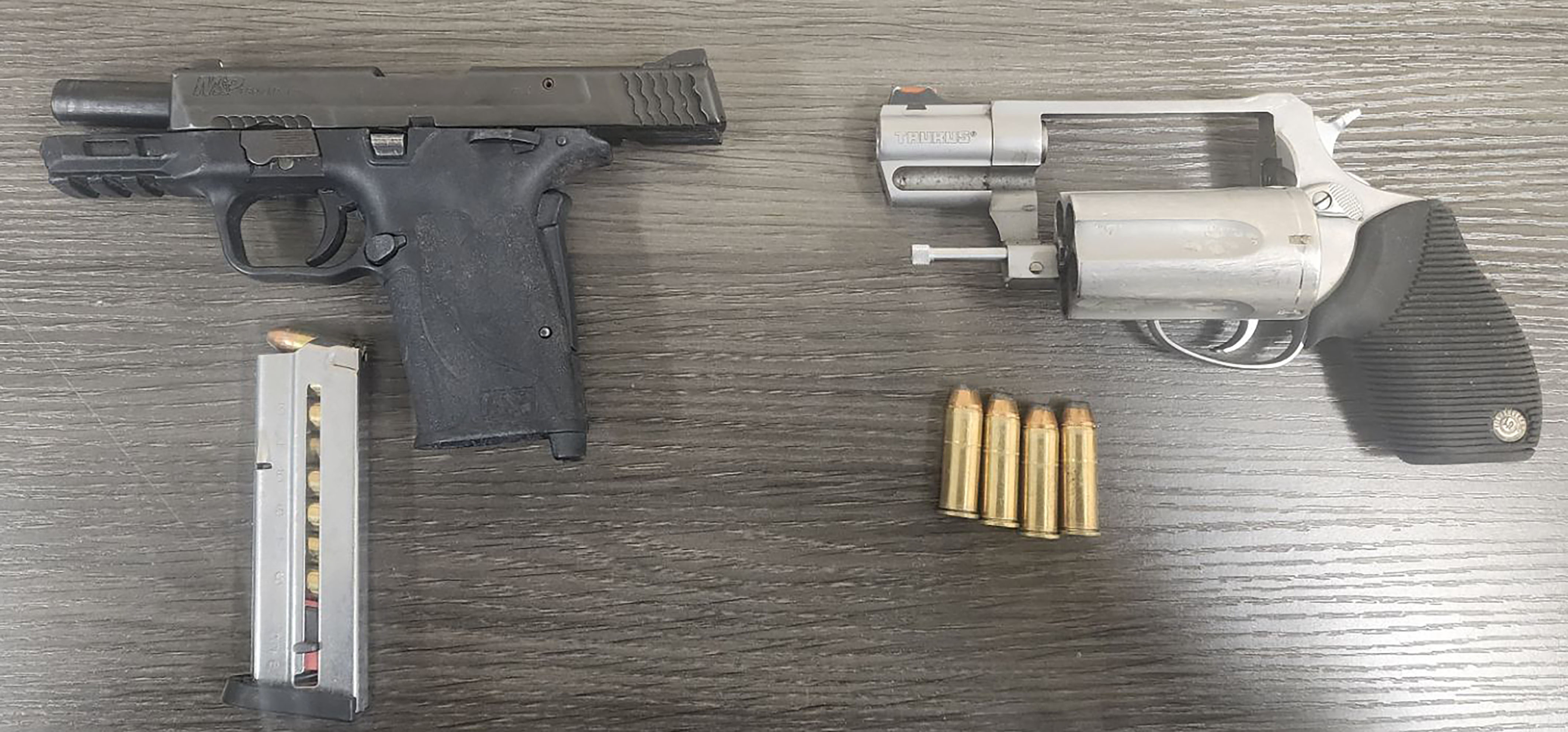 Police say one of the men was searched and two handguns were found concealed on his person. The ammunition found matched one of the firearms found.