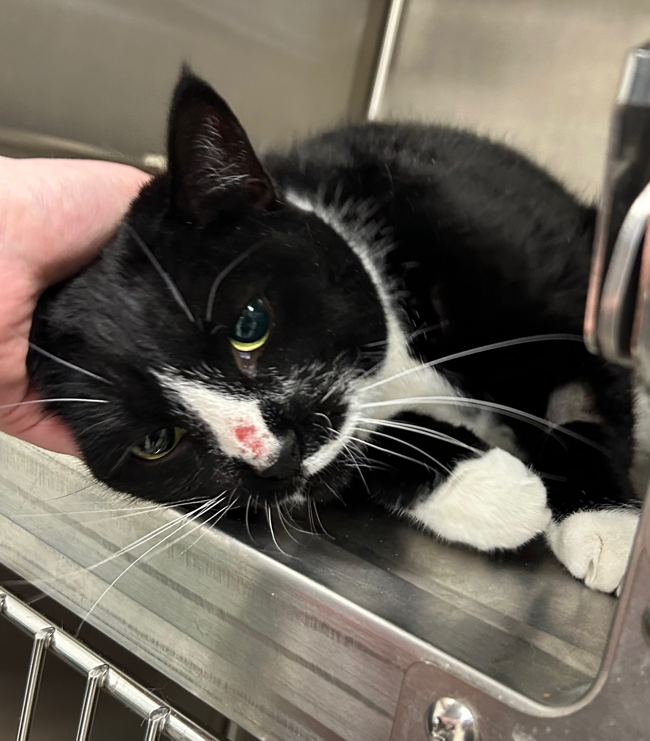 One of the crates had a note attached, saying the black and white female “has a heart murmur. Please take care of my cats.”