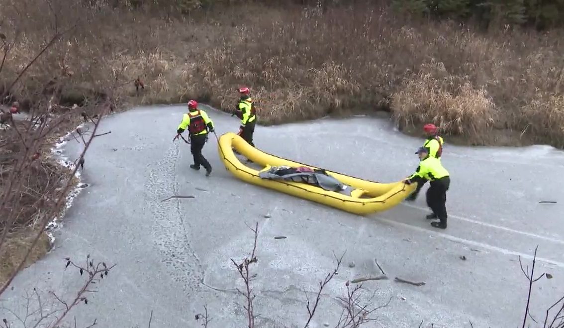 “We pulled the patient up onto one of our river rescue boats and slid him along the ice up to the bridge at Smith Crossing,” Fleet said.