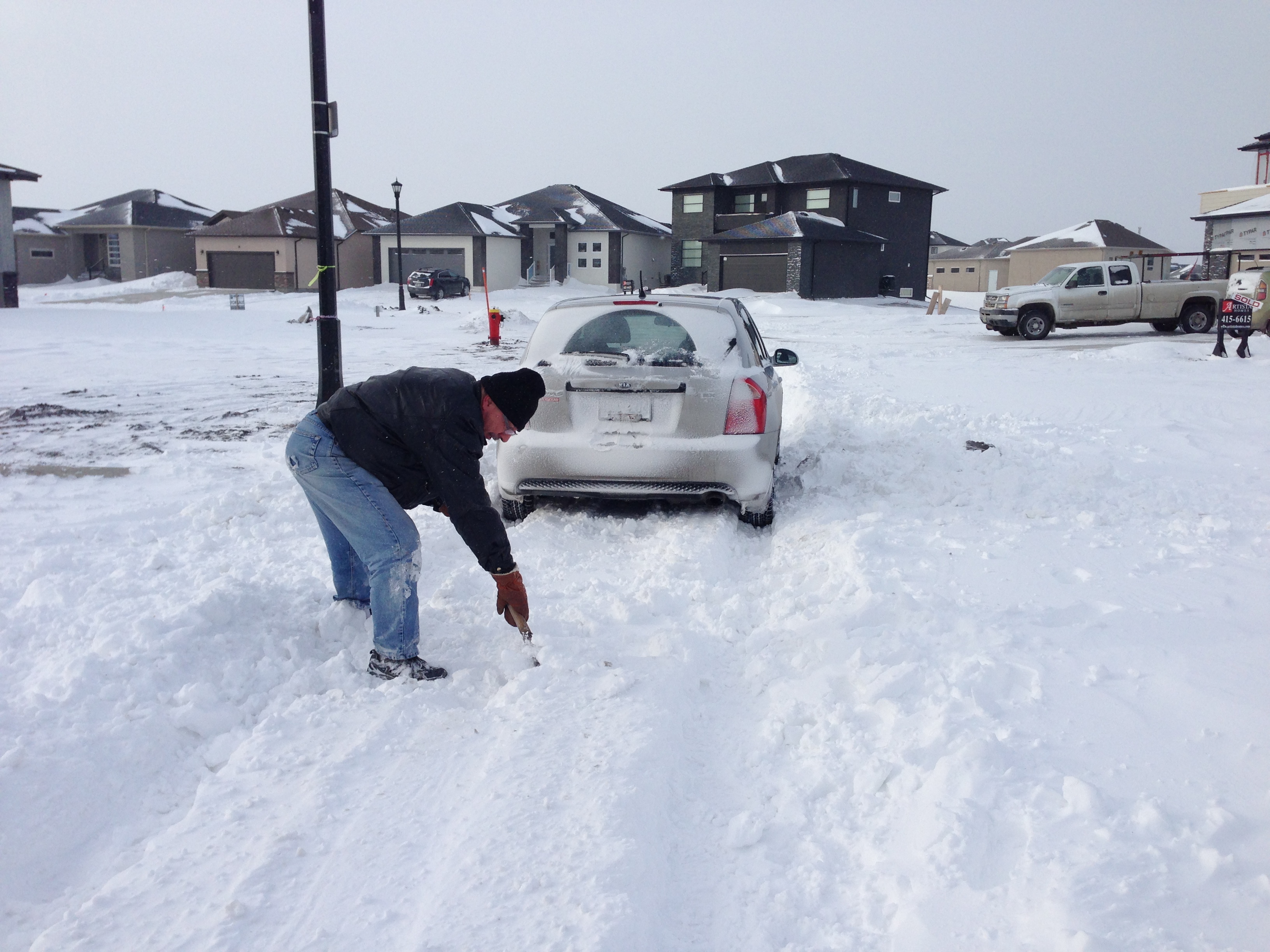 “It’ll take me another half-hour or so, but I’ll get out of here,” said Ken Peters, shovelling snow away from his vehicle after getting stuck. “There’s people living here, they need to get in and out too; not everyone had four-wheel drive.”