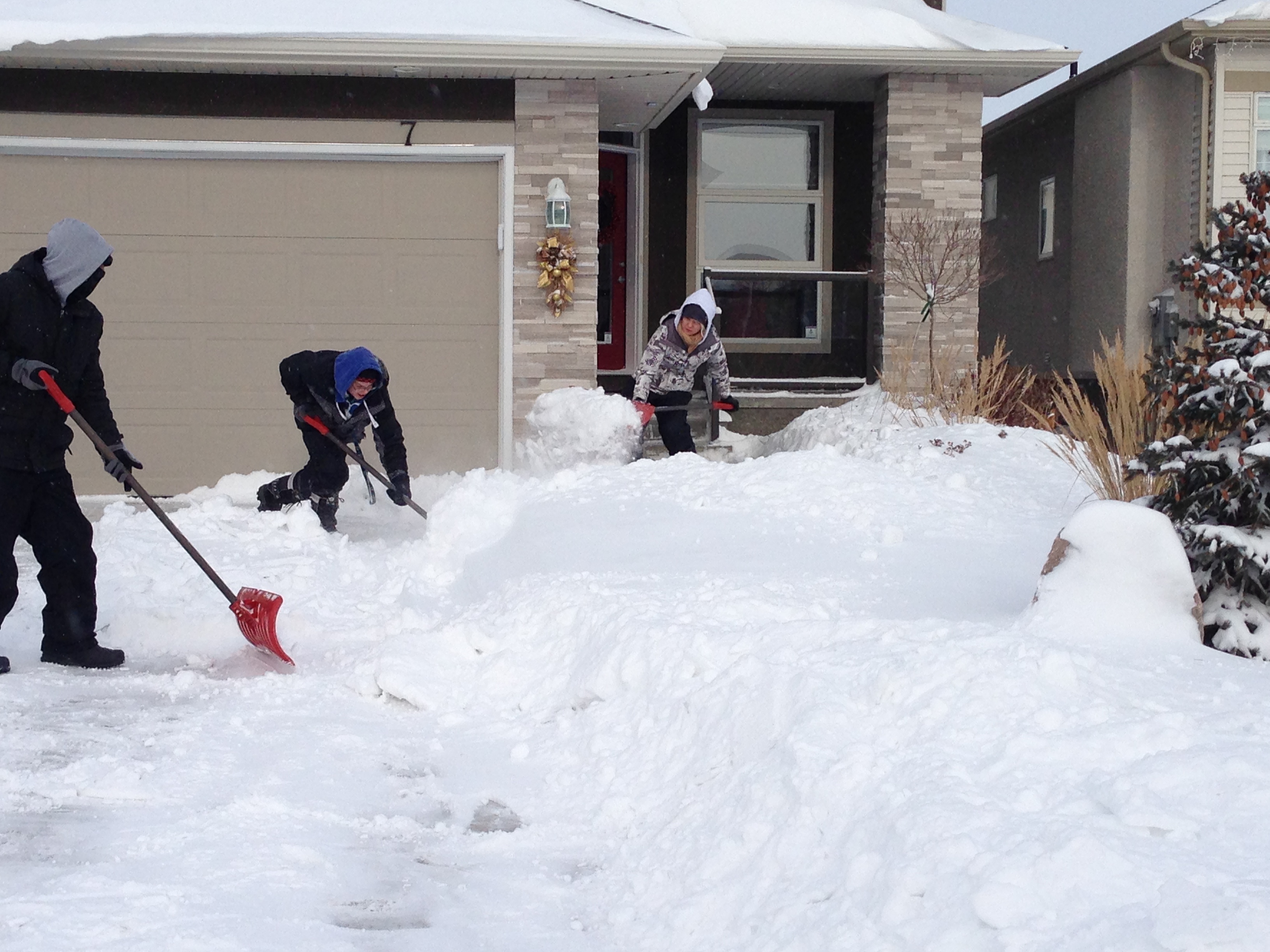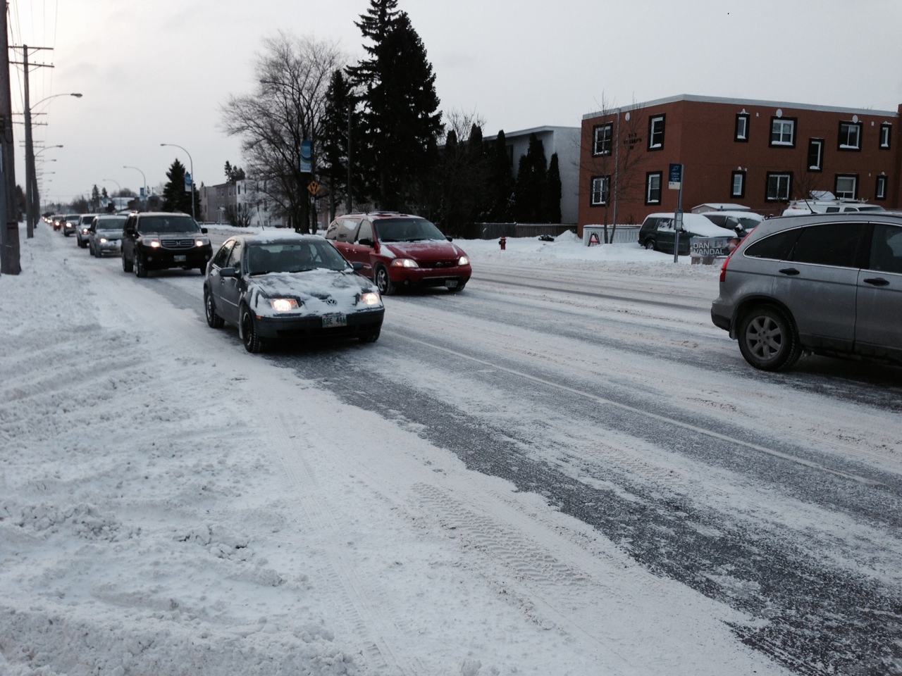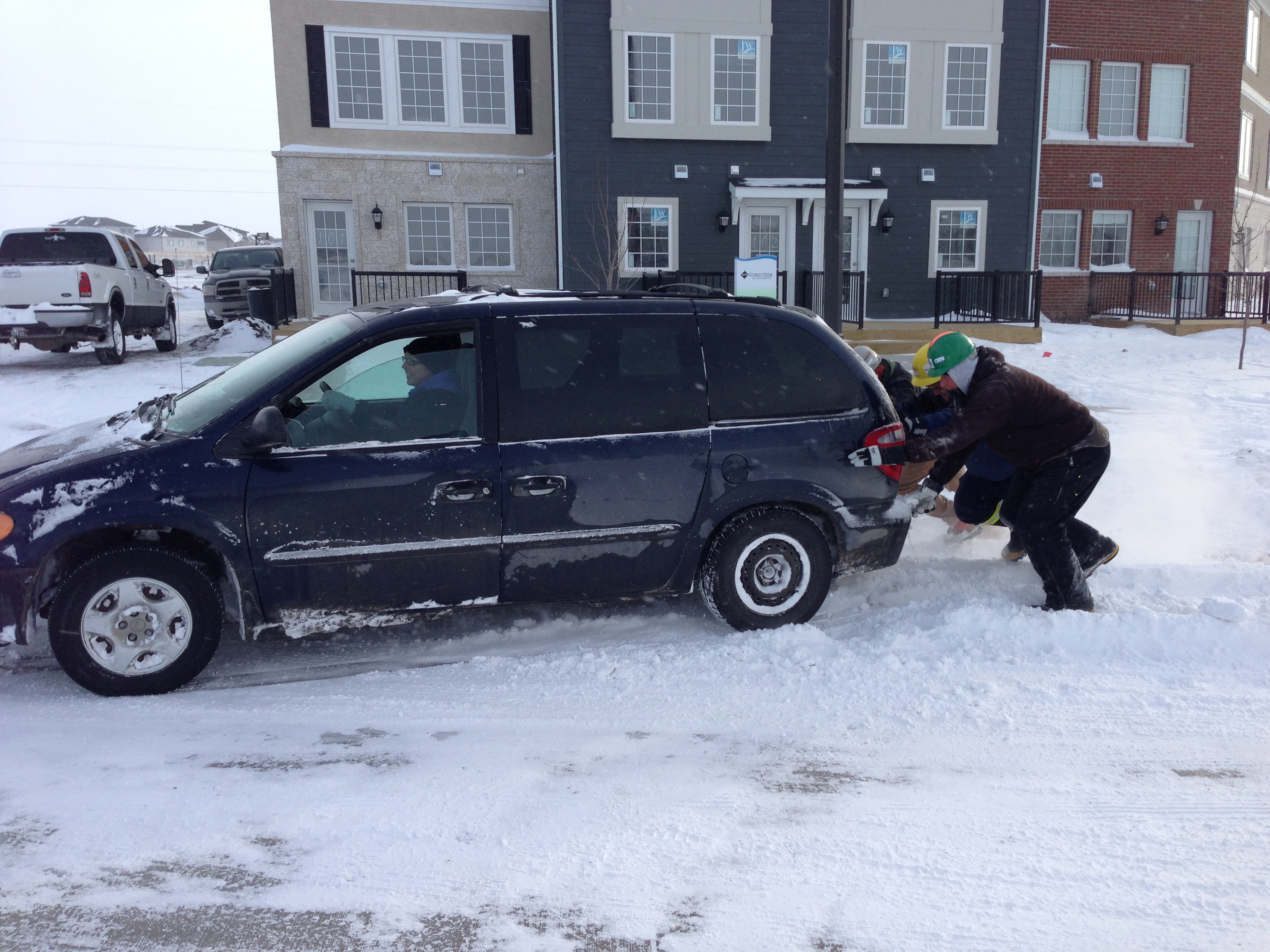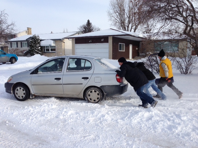 “I didn’t make it past the driveway,” said resident Cori Toews, who got stuck on her street, “so I went and got my nice neighbours and they pushed me out. Now they’re just going to give me a ride in my truck.”