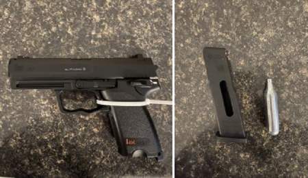 In a media release, Victoria police said they were called to the intersection of Douglas and Fort streets, after reports of a man with a fake beard in a Santa suit waving a gun in the air.
