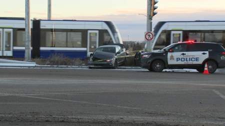 A stolen car was involved in a hit and run with a Valley Line LRT train in southeast Edmonton during the Monday morning commute.
