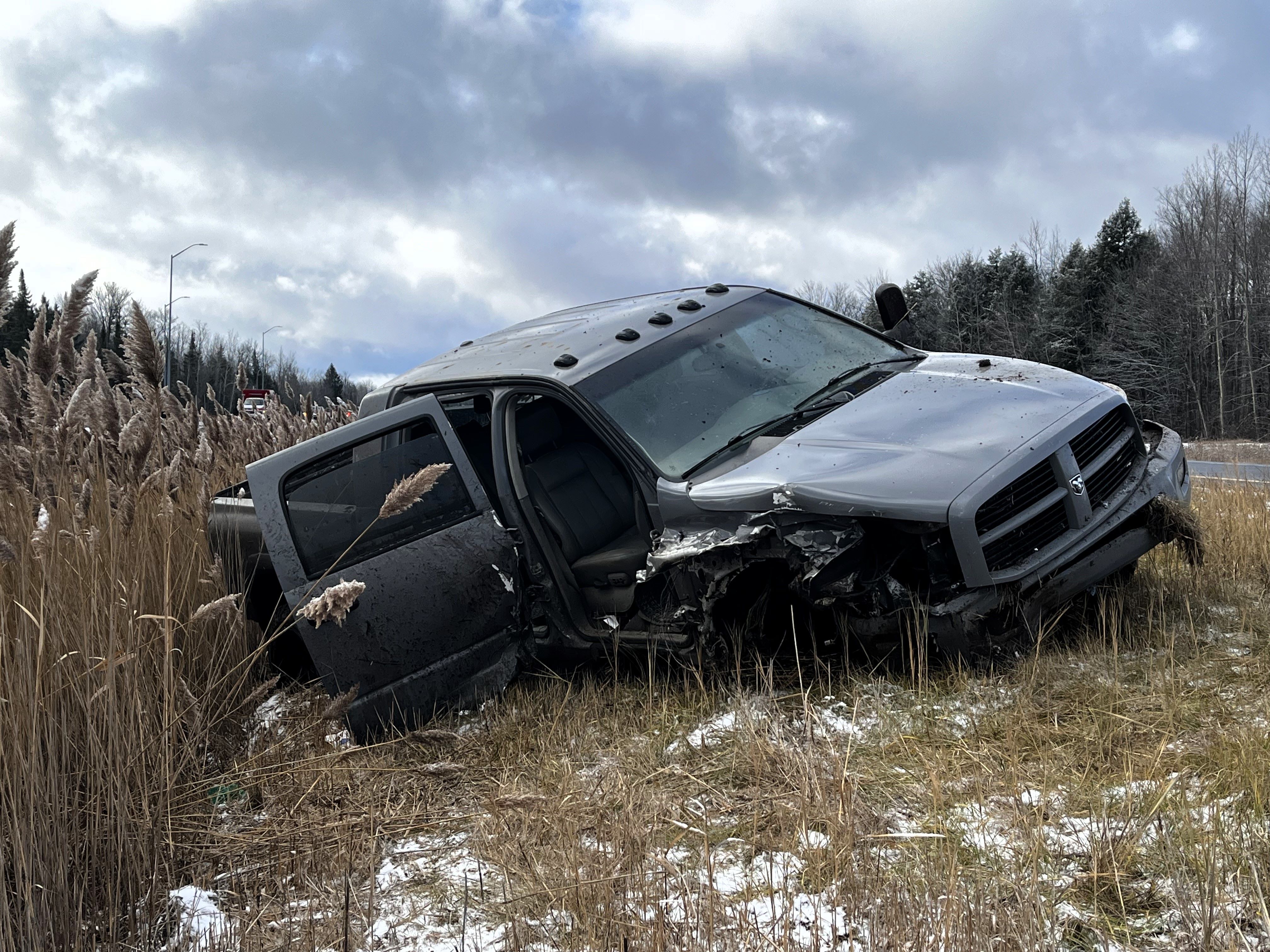 Peterborough County OPP determined the truck had been travelling northbound on the highway when it collided with a commercial motor vehicle before striking a guard-rail.